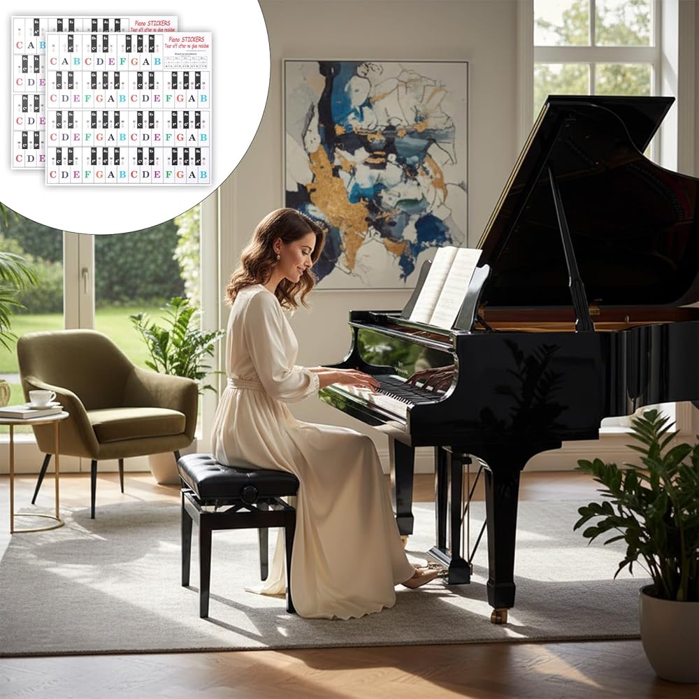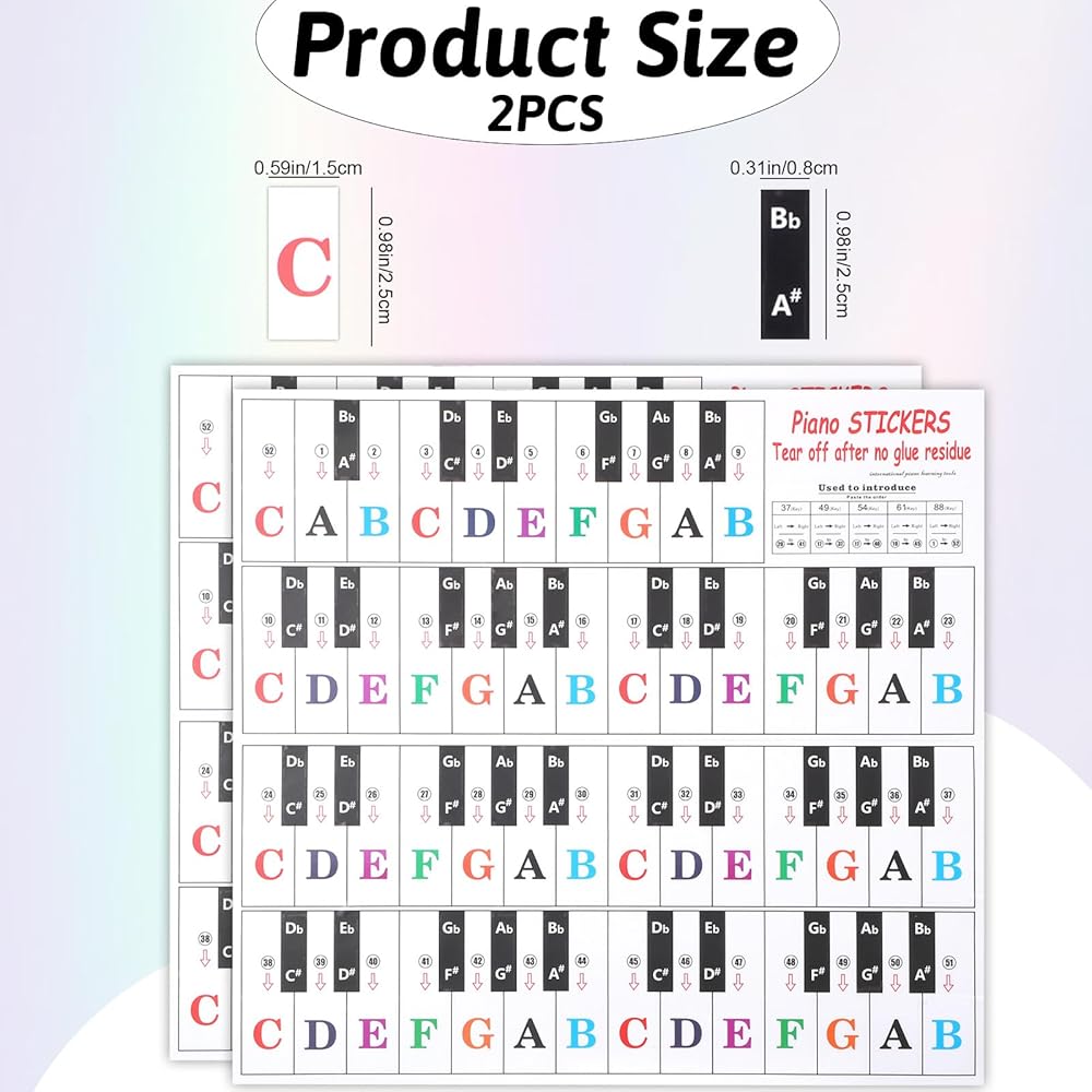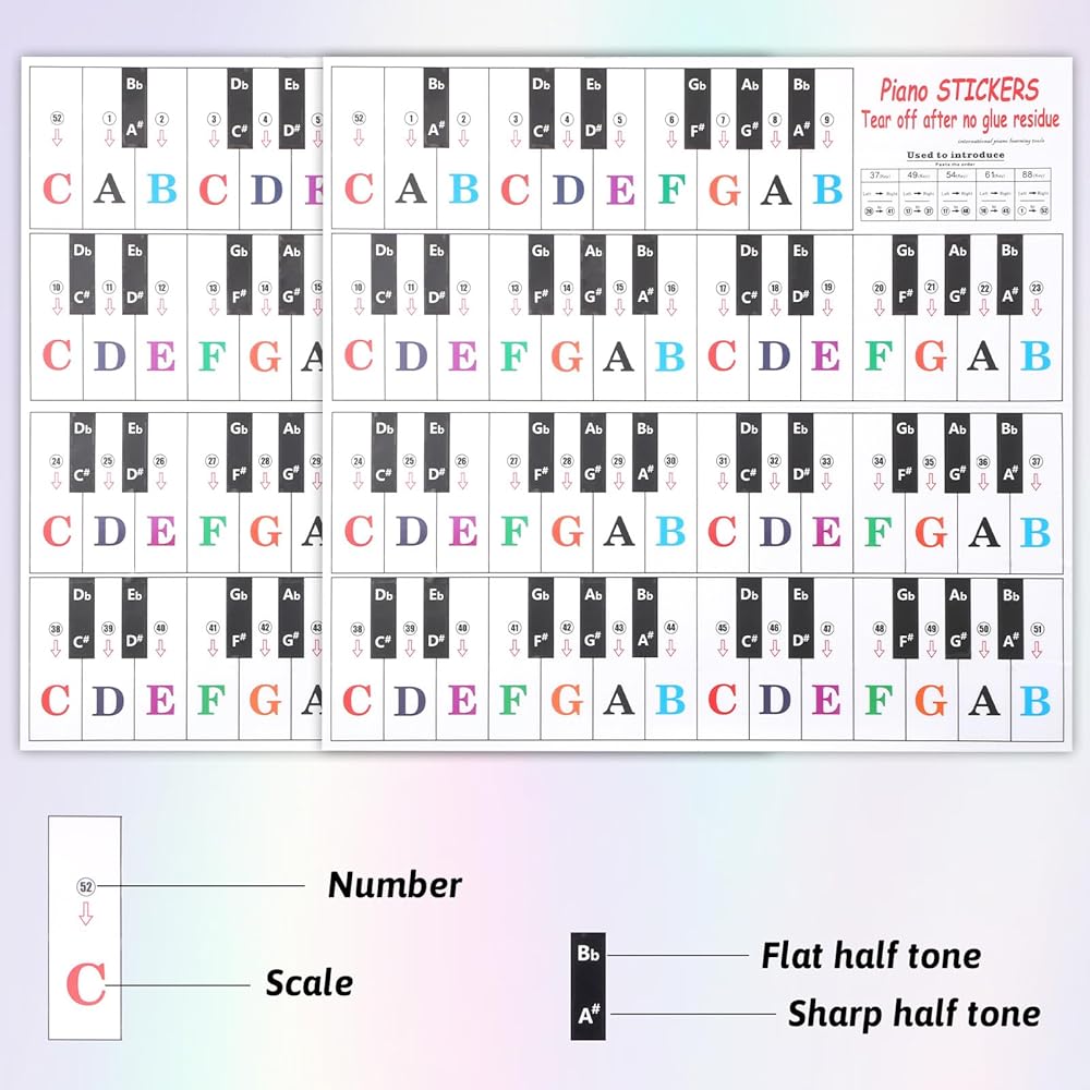【Ultra-Thin & Non-Interfering】The stickers are made from an ultra-thin material with a smooth surface, ensuring they lie flat on the keys. This minimal profile means you can barely feel them under your fingers during play, allowing for uninterrupted practice of techniques like portamento, glissando, and arpeggios. The design prioritizes an authentic playing experience, so learners can focus on developing proper finger placement and technique without physical hindrance from the learning aids.