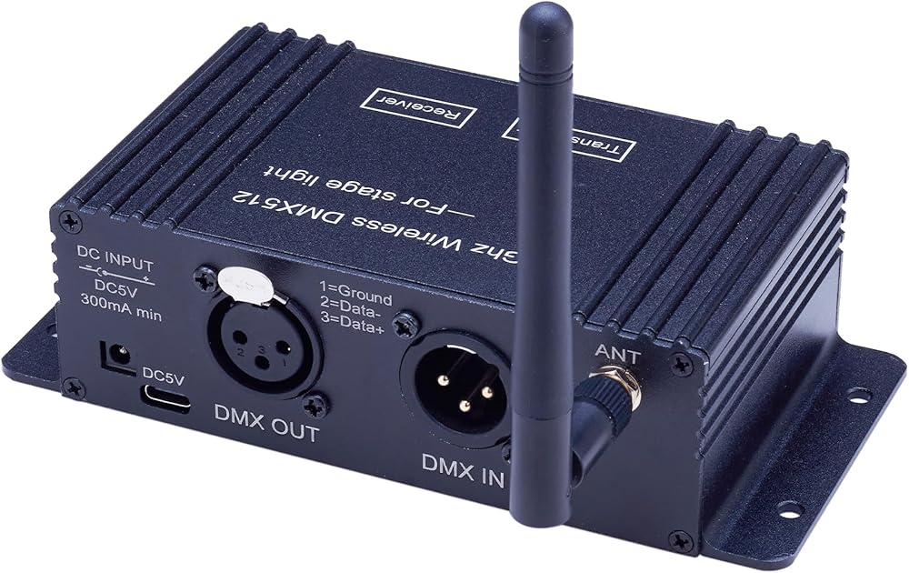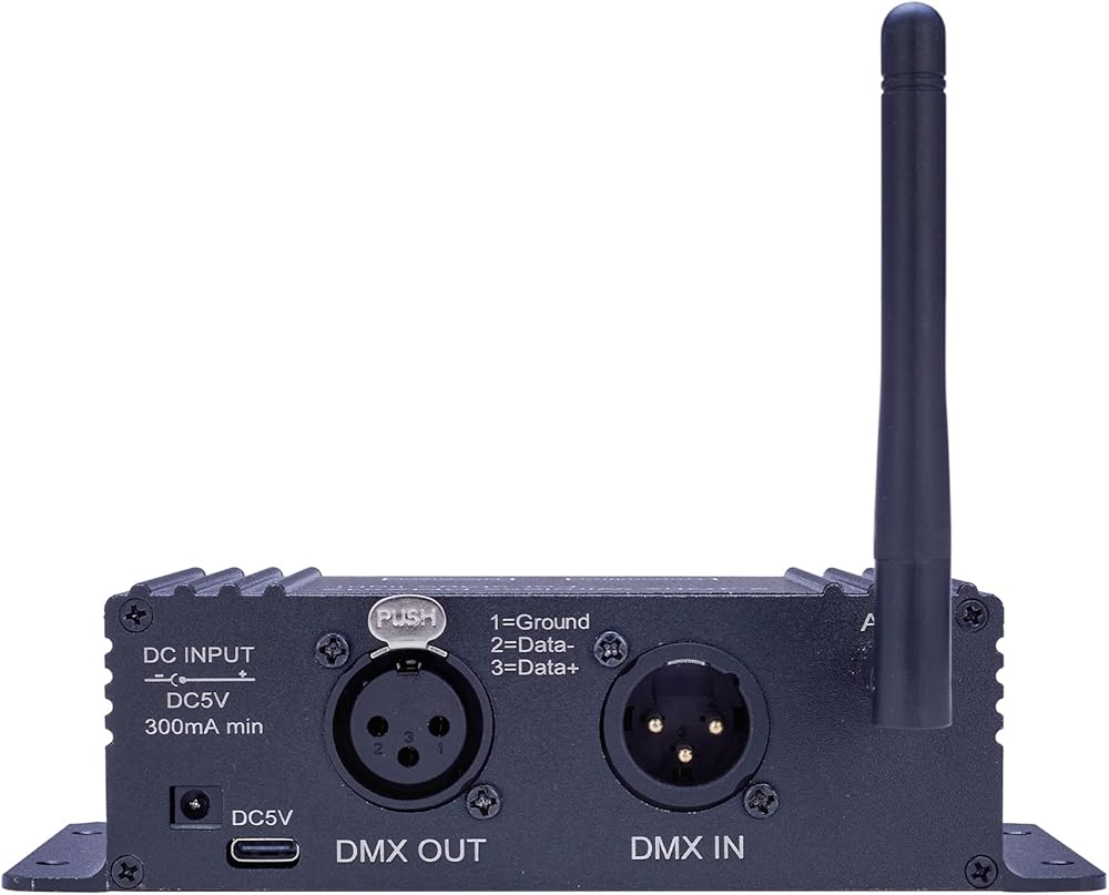 WIRELESS CONNECTIVITY: 2.4GHz wireless DMX512 protocol allows reliable transmission between transmitter and receiver units for stage lighting control