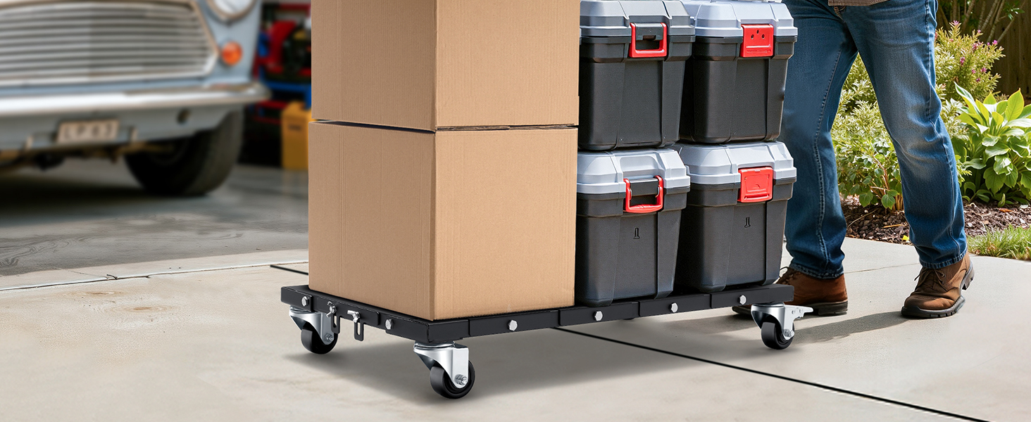 【Versatile for Moving & Storage – Your Multi-Purpose Home Helper】Ideal not just for moving furniture, appliances, or building materials, but also as a mobile storage base. Organize workshop tools, or heavy equipment on the mover dolly and roll it neatly under a workbench or into a corner to save space. A reliable partner for homes, workshop, garages and warehouse