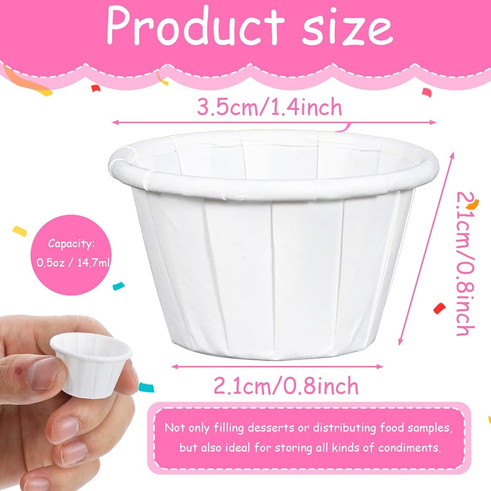Suitable for Most Occasions: Our white paper cups 0.5 oz are ideal for a wide range of events, from casual gatherings to formal celebrations. These disposable paper cups are perfect for birthdays, weddings, anniversaries, and more. The paper sample cups are designed to enhance your serving experience, ensuring every guest enjoys a delightful tasting.
