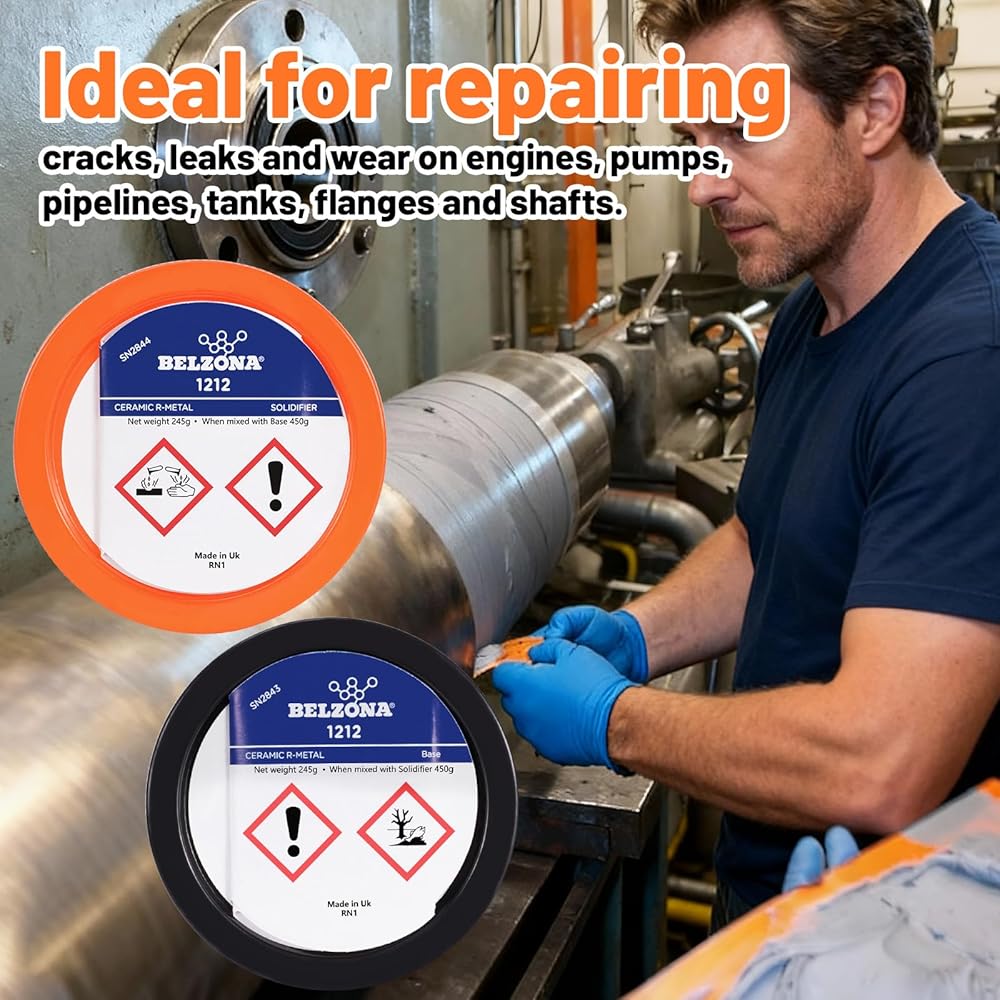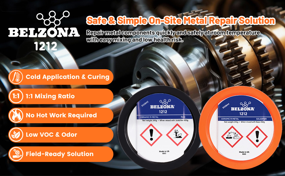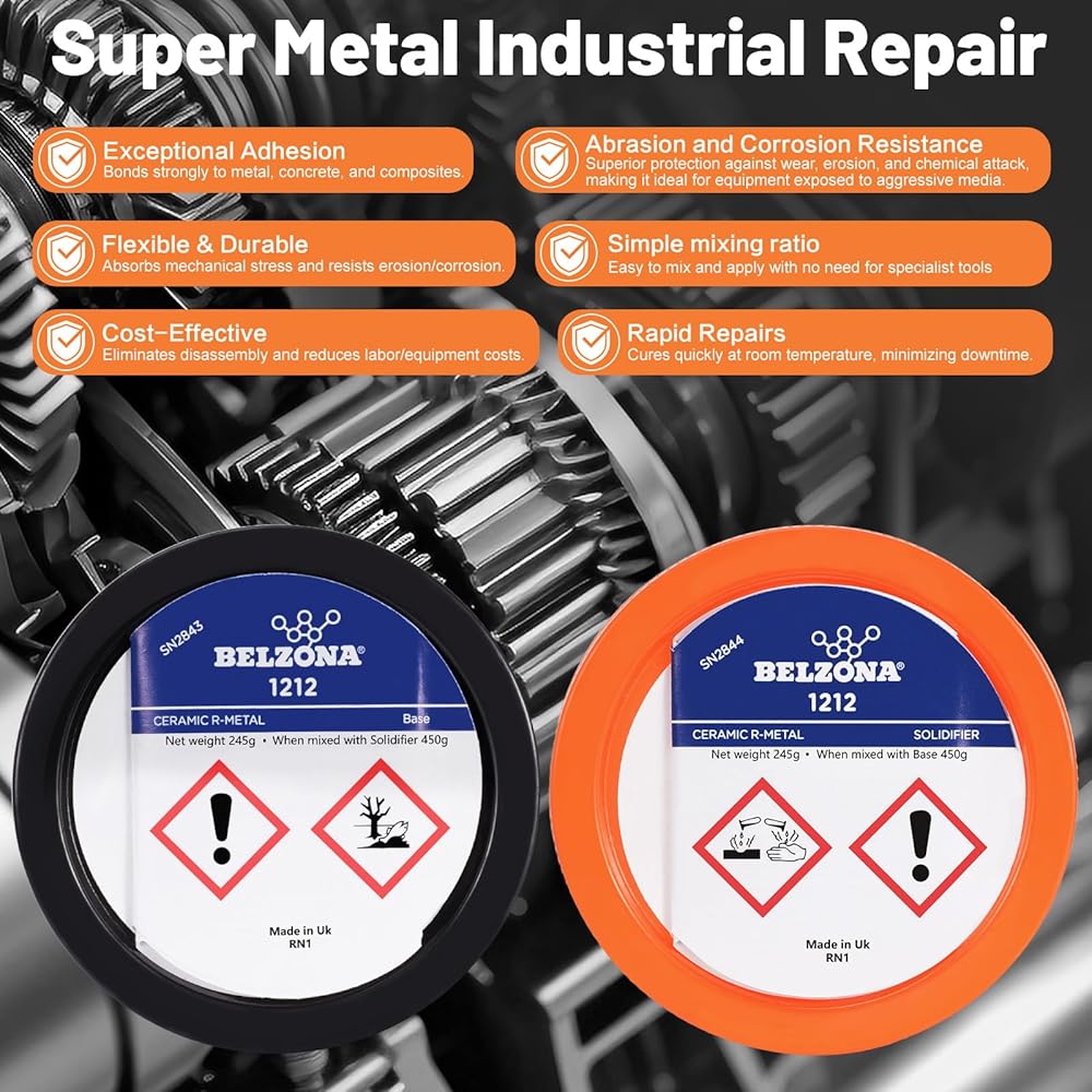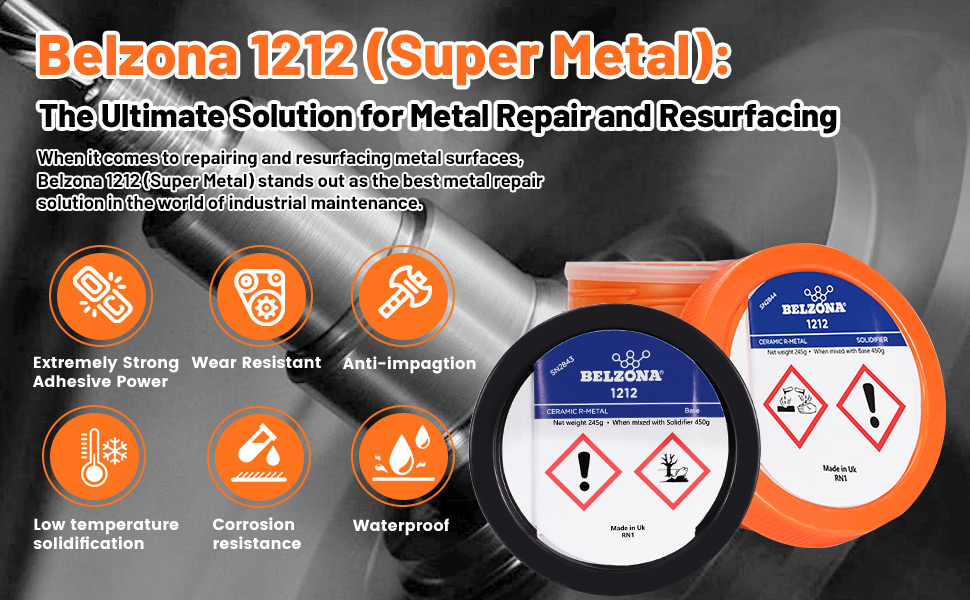 • [Belzona 1212] Surface Tolerant Epoxy Repair Composite. 450g one Kit, Two Parts Base A 205g + Solidifier B 245g. Used for emergency in-situ metal repair on oil-contaminated, wet, and underwater substrates. Rapid curing and excellent adhesion.