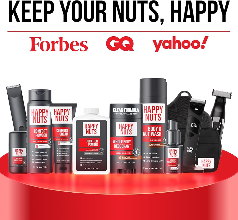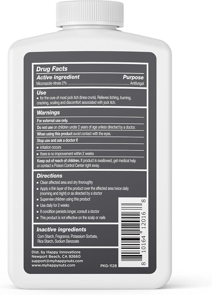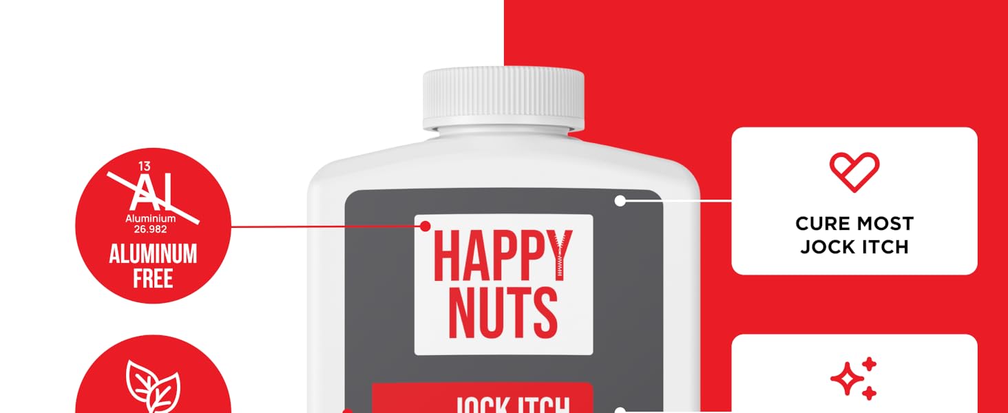 2% MICONAZOLE NITRATE - Say hello to jock itch relief with this Happy Nuts jock itch treatment that is clinically proven to tackle those pesky itch attacks with 2% of the active ingredient Miconazole Nitrate. This powerful antifungal fights the root cause, sending jock itch packing. Enjoy your day itch-free without unwanted interruptions so you can focus on what really matters: enjoying life without squirming in discomfort.