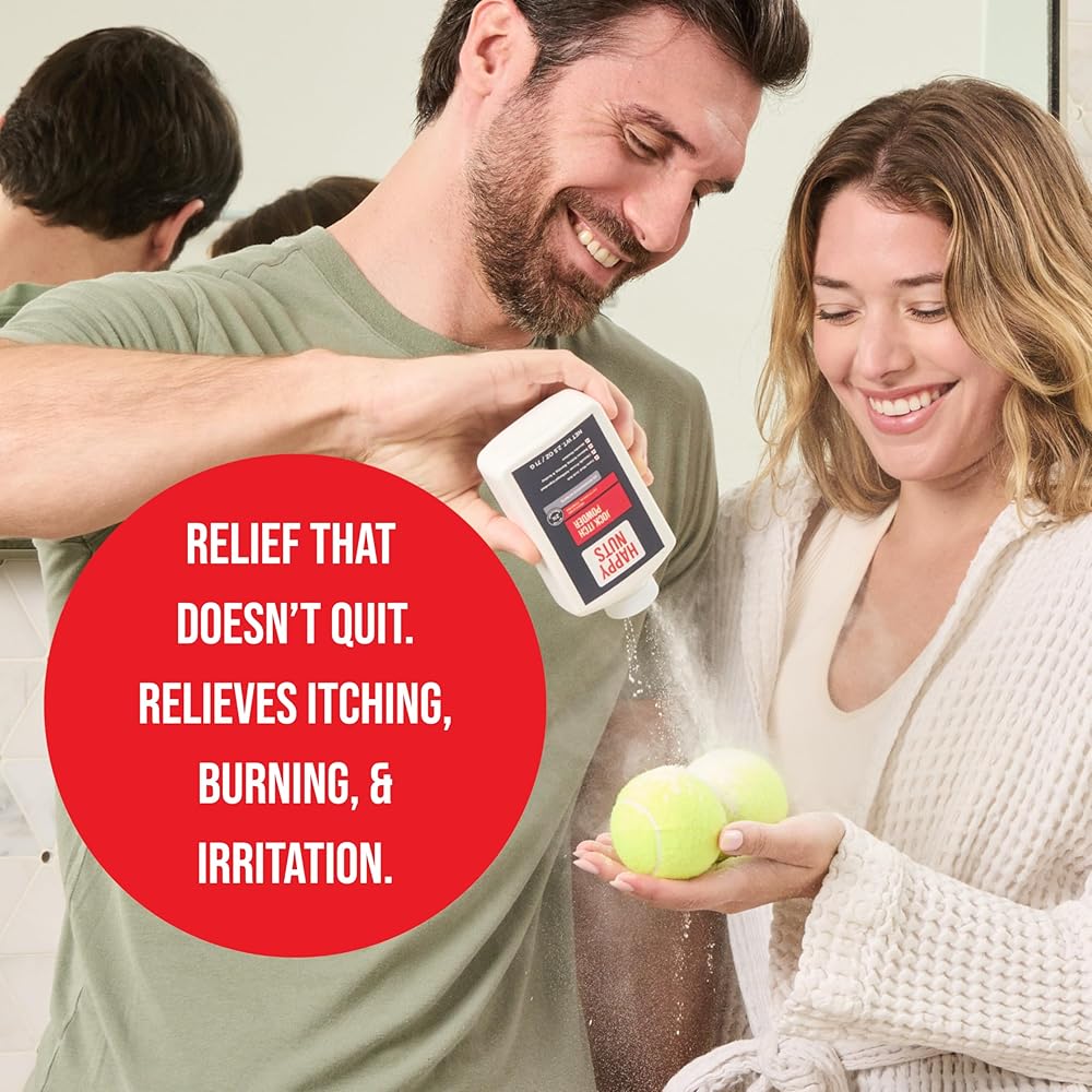 RELIEVES ITCHING, BURNING & SCALING - With Happy Nuts antifungal jock itch treatment powder, you can forget about that unwelcome burning sensation and scaling. This jock itch treatment powder is expertly formulated to relieve symptoms, getting you back to feeling like the confident man you are. Because when you're comfortable down there, you're more comfortable everywhere—ready to conquer the world.