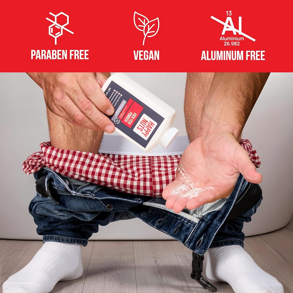 THE ULTIMATE CONFIDENCE BOOSTER - Formulated with the maximum allowable strength of Miconazole Nitrate, Happy Nuts jock itch powder helps deliver fast, effective relief right where you need it. As a top rated jock itch treatment, it's your secret weapon in achieving ultimate comfort and liberation from discomfort. Elevate your personal care routine with a treatment designed for real men; fewer distractions and more focus on living your best life.