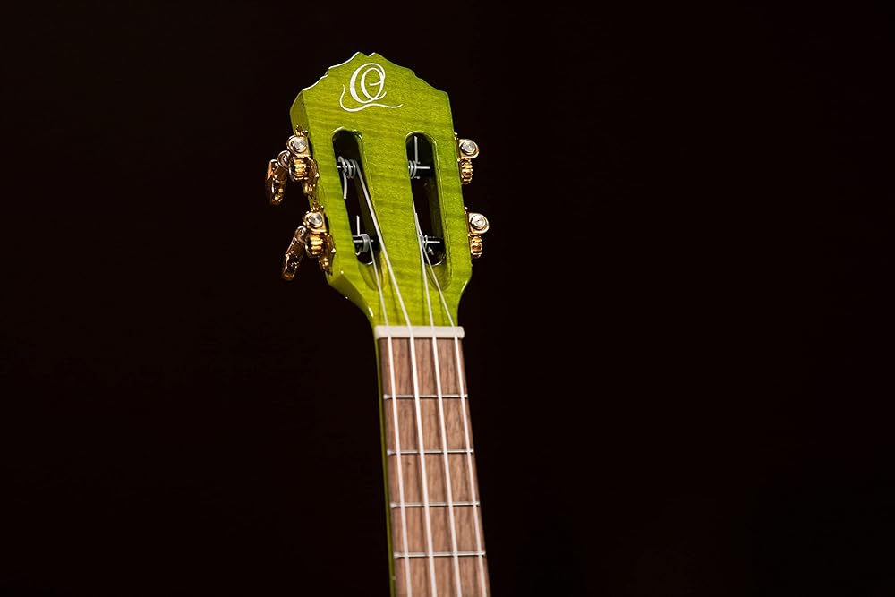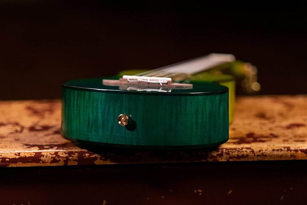 Tenor 432 mm Body - 70 mm Body Depth - 37 mm Nut Width- -18 Frets - Slotted Headstock with Flamed Maple Veneer - -Gold Plated Single Tuning Machines with Gold Plated Buttons