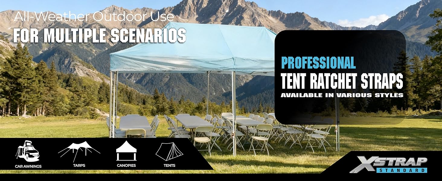 【4-Pack Value】 4 XSTRAP Standard 1" Ratchet Tent Straps with Loop End - 12ft Heavy Duty Tie Downs for Camping, Events & Canopies