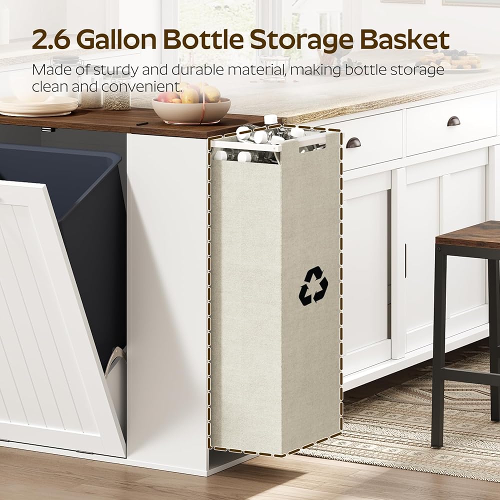Tilt Out Trash Can Cabinet, 10 Gallon Hidden Garbage Can Cabinet with Bottle Recycling Compartment, Wooden Recycling Cabinet Trash Can, for Kitchen, Living Room, White and Walnut WB06WH