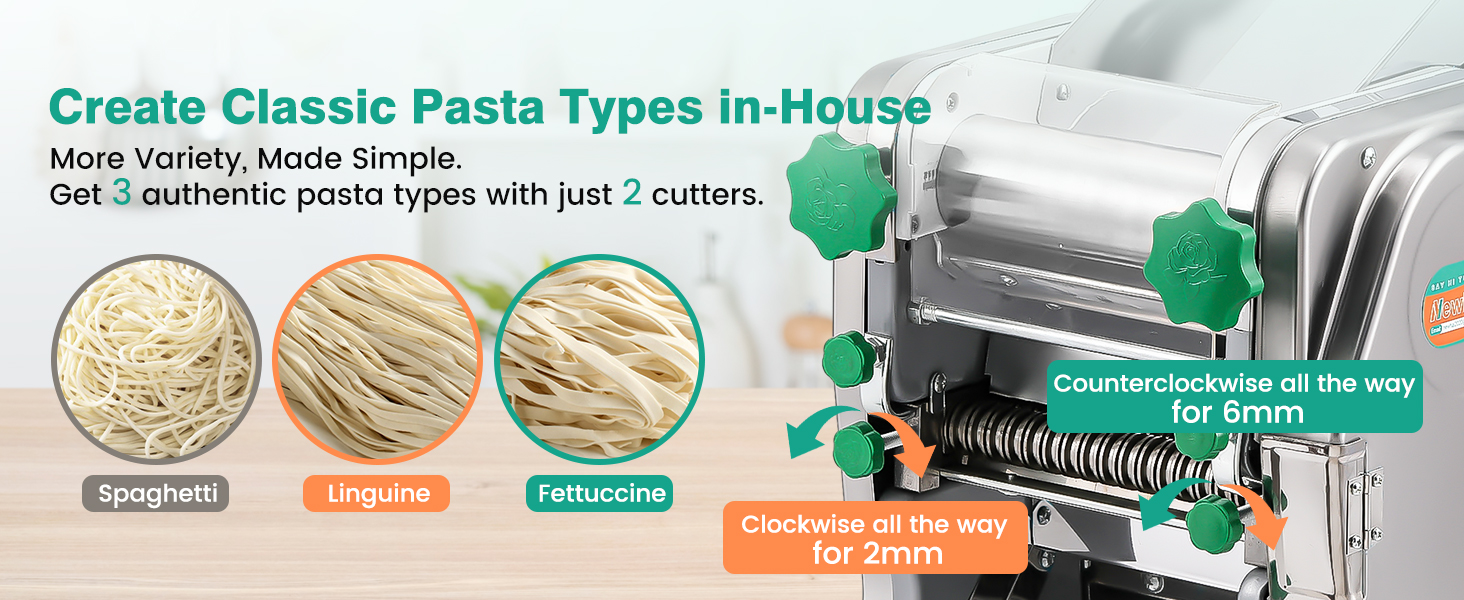[COMMERCIAL & HOME USE] Our noodle maker boasts a powerful and stable 550W motor, which is able to dissipate heat automatically during operation. Helps you process dough efficiently by allowing fast and vertical cutting of noodles that remain separated and don't stick together. Whether it's for use in restaurants or home kitchens, our versatile noodle maker is perfect for creating delicious, homemade noodles with ease.