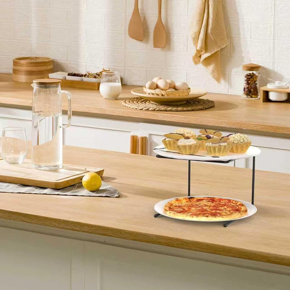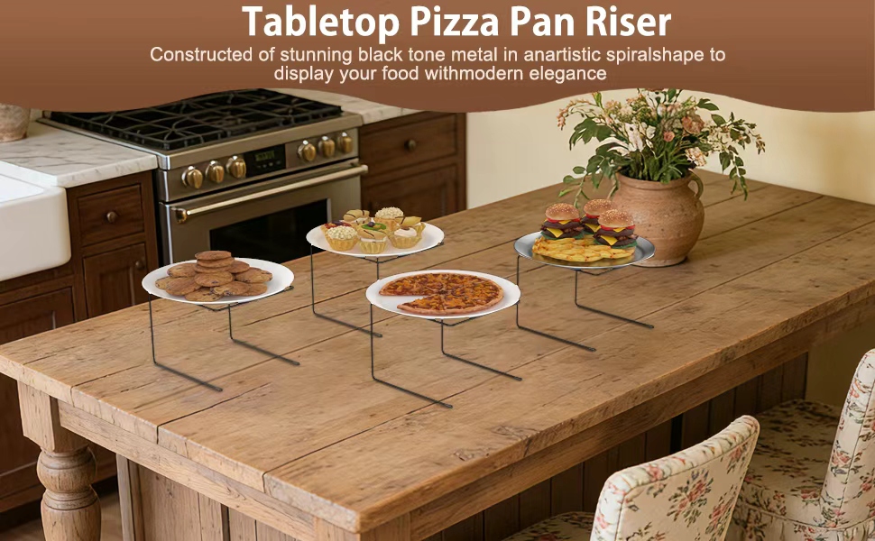 Pizza holders are perfectly displays pizzas (10"-12" pans or pizzas), cakes, appetizers, or desserts; Ideal for pizza nights, catering events, cafes, and adding height to charcuterie displays (Not inclued Pizza Pan)