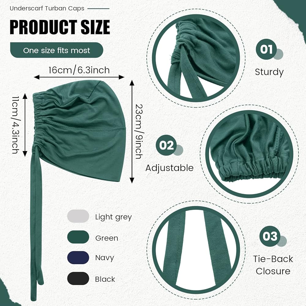 Hair cover sets: there are 4 pieces of hair beanies in your package, each women underscarf hat is in a color; The different colors and enough quantity can meet your daily use and replacement, diverse of hijab caps are nice for you to match your clothes and make you look different