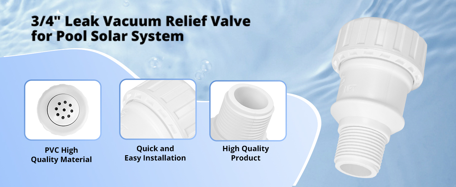 COST SAVING: Drain excess water from solar collectors and pipes with the 3/4' Vacuum Pressure Relief Valve. This product can be used with your pool's solar panels to reduce maintenance costs on your home solar equipment.