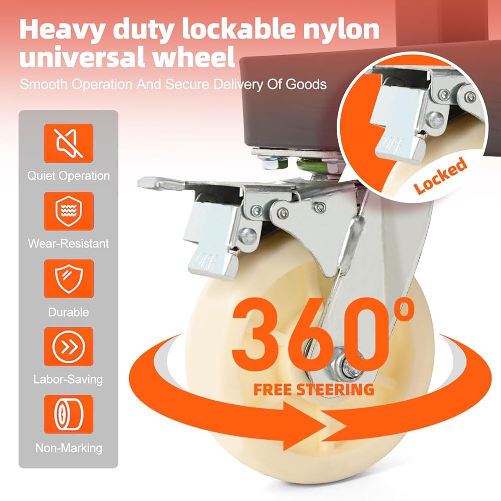 【All-terrain nylon wheels - Smooth travel on any road surface】 Heavy-duty national standard nylon wheels, anti-slip and wear-resistant, can easily handle various complex terrains such as indoor floors, outdoor sand and gravel, and muddy roads. It is smooth and effortless to push and pull without damaging the floor