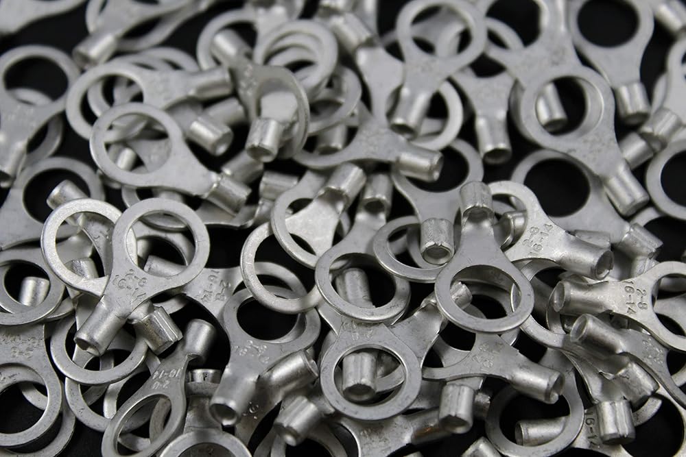 THIS IS FOR A 100 PACK 14-16 GAUGE UNINSULATED/NON INSULATED RING 5/16 CRIMP CONNECTOR/TERMINAL THIS HAS A TIN COATED COPPER CORE HIGH QUALITY WE HAVE EVERY TERMINAL/CONNECTOR THAT YOU COULD WANT IN OUR EBAY STORE UNINSULATED COPPER VINYL NYLON BULLET BUTT RING SPADE T TAPS SCOTCH LOCKS CLOSE END CAPS WIRE NUTS ETC.