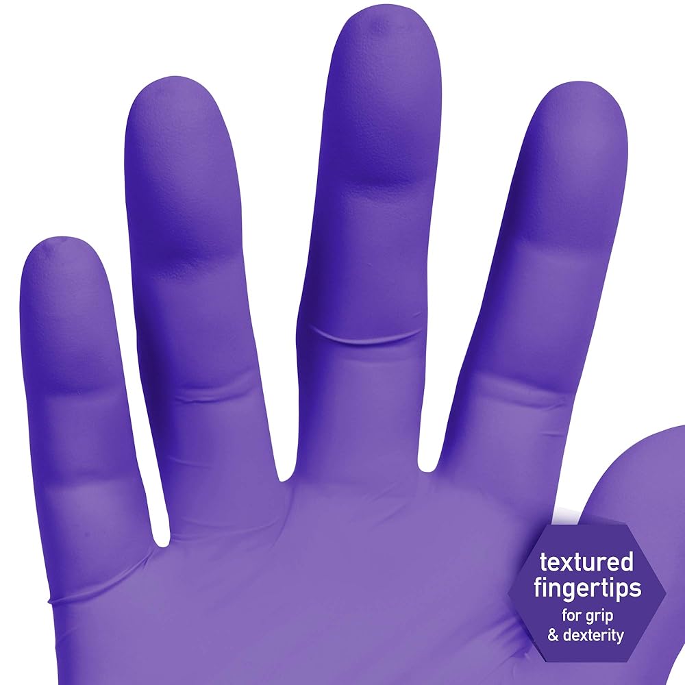 Get a good grip and an excellent fit. Textured fingertips allow you to work with ease and confidence. Easy-to-don beaded cuffs provide greater strength and durability. Nitrile, synthetic rubber construction eliminates the possibility of latex-oriented allergic reactions. Long, 9 1/2-inch ambidextrous design. Style: Disposable; Wrist Style: Beaded Cuff; Material(s): Nitrile; Color(s): Purple.
