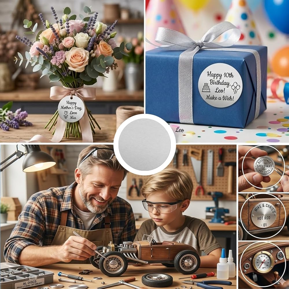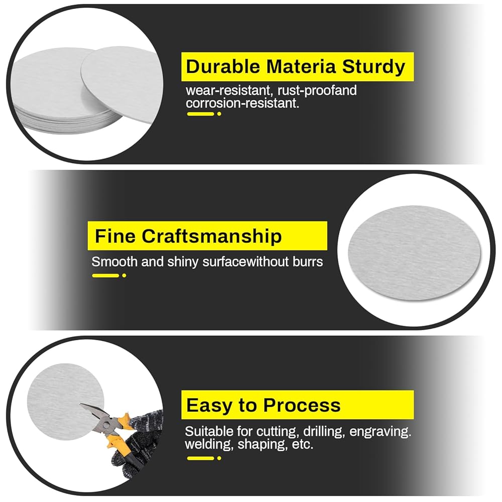 【Premium 6061 Aluminum Alloy】: Made from grade 6061 aluminum, these metal discs offer an excellent balance of strength, lightweight properties, and good corrosion resistance. They are easy to cut, bend, polish, and engrave, making them ideal for custom crafts, prototyping, and light industrial applications.