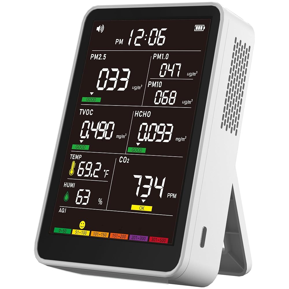 Professional Indoor Air Quality Monitor with 7X AQI Beep Alarms,16 in 1 Portable Real-Time Detector for PM2.5 | PM10 | CO2 | TVOC | HCHO | Temp | Hum for Home Cars Plants Pets