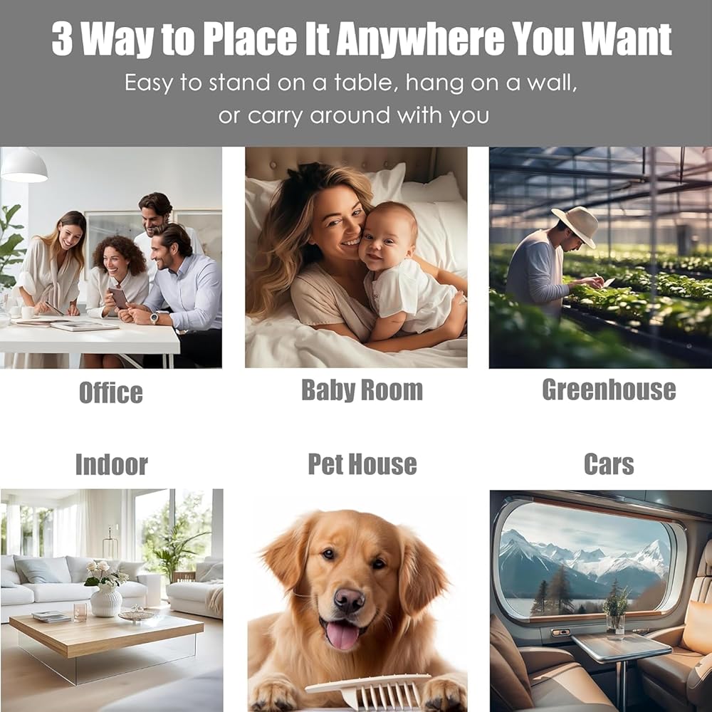 Professional Indoor Air Quality Monitor with AQI Alerts, Portable Real-Time Detector for Home, Car, Plants & Pet