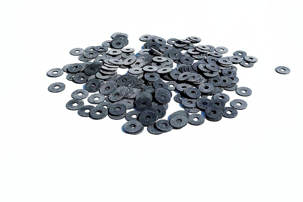 Lot of 250 Neoprene Flat Rubber Washers - 3/4" OD X 1/4" ID X 1/16" Thickness. Specs: 3/4" Outside Diameter, 1/4" Inside Diameter, 1/16" Thickness. Excellent resistance to oil, heat, cold, light, and oxidation. Moderately resistant to ultraviolet light. Highly resistant to weather, water, oils, greases, and solvents. Used for purposes like gaskets, vibration suppression. They provide a durable seal that prevents leaks in a variety of plumbing applications. Whether you need to replace worn-out washers under kitchen faucets, repair leaky outdoor spigots, or install new shower heads, these rubber washers will solve the problem with a snug fit. The package includes 250 washers for an excellent value, giving you plenty of extras on hand for future DIY tasks or emergencies.