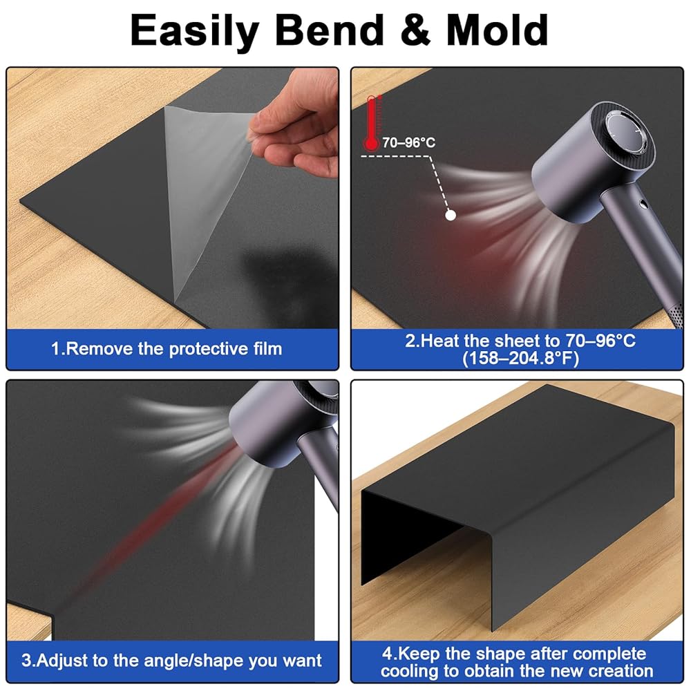 【Wide Range of Uses】ABS sheet has a heat deflection temperature of approximately 70–96°C (158–204.8°F), allowing it to be bent into desired shapes. It is widely used in home decor, architectural models, automobiles, robotics competitions, crafts, and more. It can also be employed for switch panels, drawer dividers, waterproof applications, and other purposes.