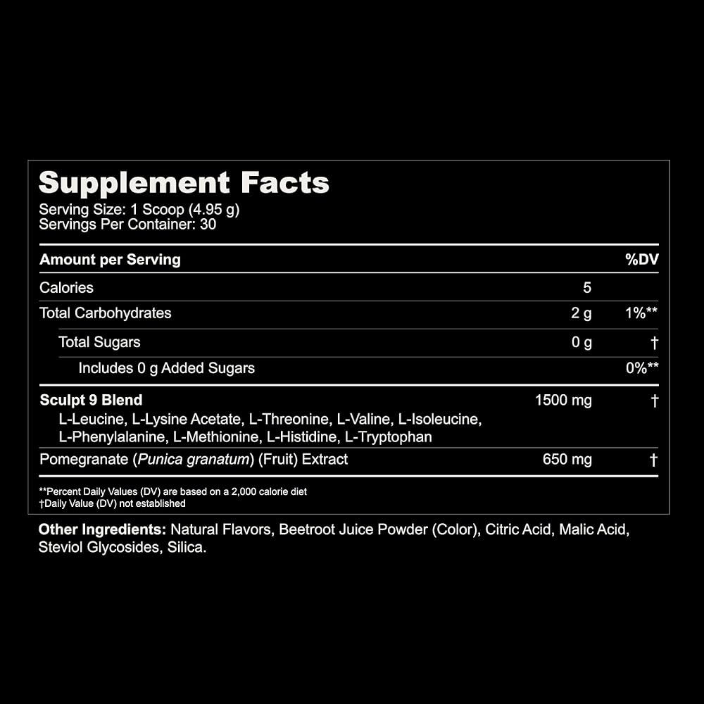 Essential Amino Acids Formulated for Women – Sculpt 9 delivers all 9 EAAs plus BCAAs to support lean muscle, recovery & strength in women of all fitness levels.