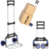 DIAMONDFORGE Folding Hand Truck, 180lbs Lightweight Foldable Dolly Cart with Wheels and Telescopic Handle, Portable Folding Dolly with Rubber Wheels for Moving Groceries, Home, Auto