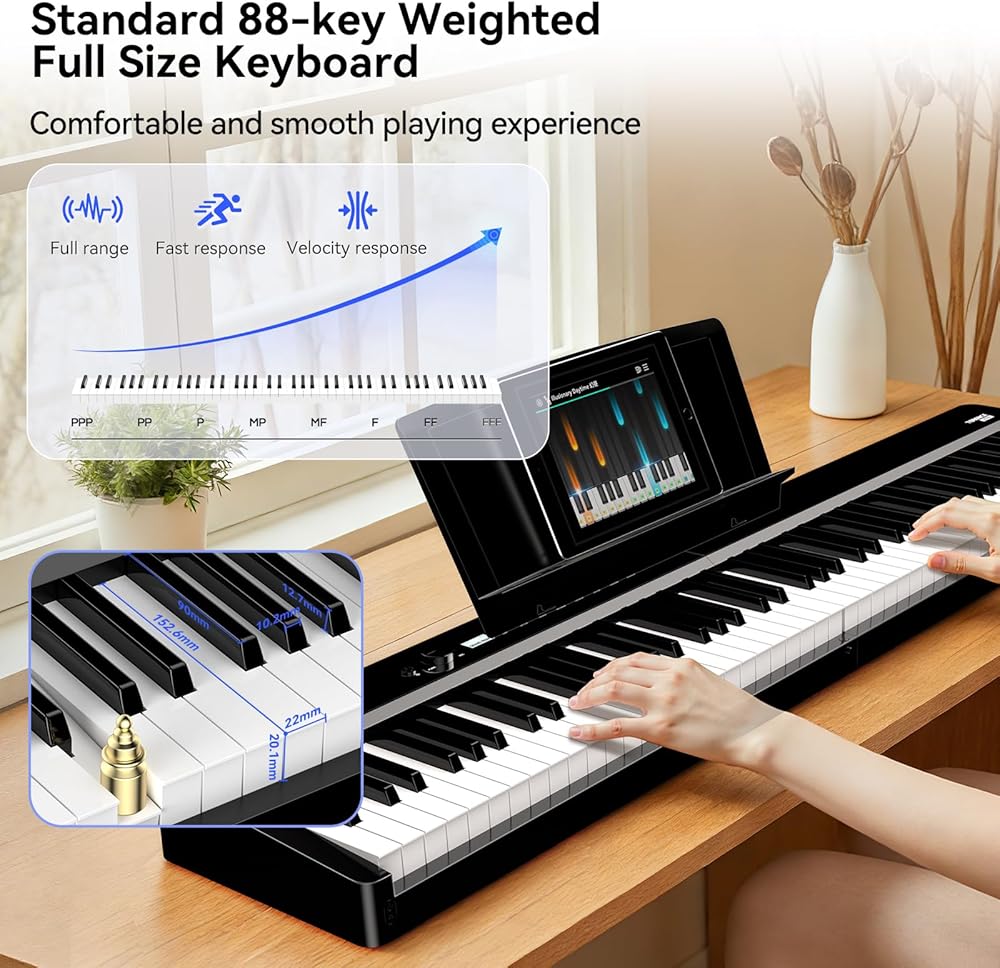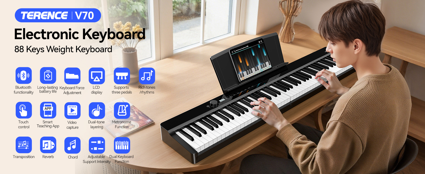 V70 Piano Keyboard 88 Keys Weight Keyboard: TERENCE Keyboard Piano Foldable 88-Key Weight Keyboard Full Size Digital Piano with Headphones 4 Speakers Bluetooth Built-in Battery (Black)