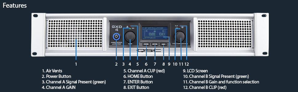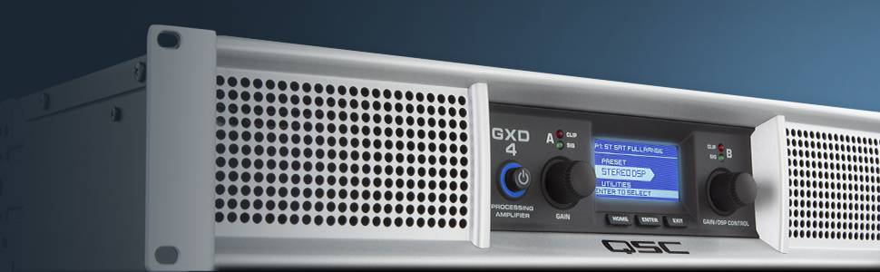 The GXD Series amplifiers are ideal for portable sound reinforcement applications and installations with demanding DSP requirements and flexibility at a cost effective price. This high performance line consists of two amplifiers, the GXD4 and GXD8, each providing enormous Class-D power in a lightweight and efficient package. The universal switch mode power supply helps reduce the weight, increase efficiency, and ensures rock-solid continued operation even with poor power conditions. The addition of on-board DSP processing with an easy-to-use interface offers powerful tools like Crossover and EQ filters, Delay, and Power Limiting that allow the user to configure the amplifier and maximize the performance of their loudspeakers. The GXD Series amplifiers are engineered to meet any demanding application and provide excellent power and legendary QSC reliability, in an efficient, lightweight, and flexible package; bottom line, the GXD amplifiers provide outstanding value!