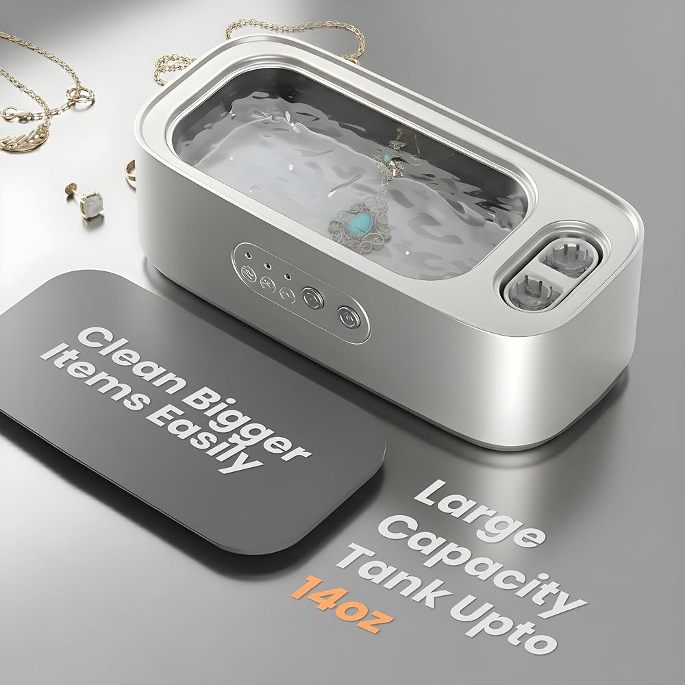 𝟒𝟖𝐤𝐇𝐳 𝐏𝐫𝐨𝐟𝐞𝐬𝐬𝐢𝐨𝐧𝐚𝐥 𝐔𝐥𝐭𝐫𝐚𝐬𝐨𝐧𝐢𝐜 𝐂𝐥𝐞𝐚𝐧𝐢𝐧𝐠 𝐏𝐨𝐰𝐞𝐫:Experience deep, high-frequency cleaning with 48kHz ultrasonic vibration. This ultrasonic jewelry cleaning machine removes dirt, oils, and buildup from rings, earrings, watches, and delicate accessories — restoring brilliance safely without scratches.