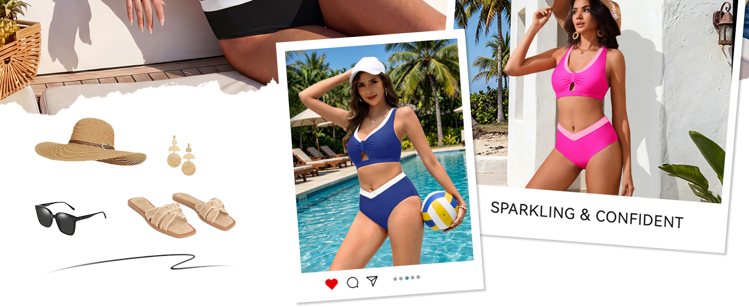 • Material:This sporty two piece swimsuit for women is composed of 82% Nylon and 18% Spandex, providing a smooth, gentle, breathable, and ultra-comfortable wearing experience. With its eye-catching color-blocking, bikini sets for women boost its line definition and layered style—you're guaranteed to stand out from the crowd.