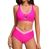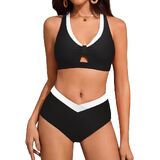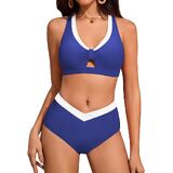 Fayenne Women's High Waisted Bikini Sets Sporty Two Piece Swimsuits Color Block Cutout V Neck Tummy Control Bathing Suits in Kuwait