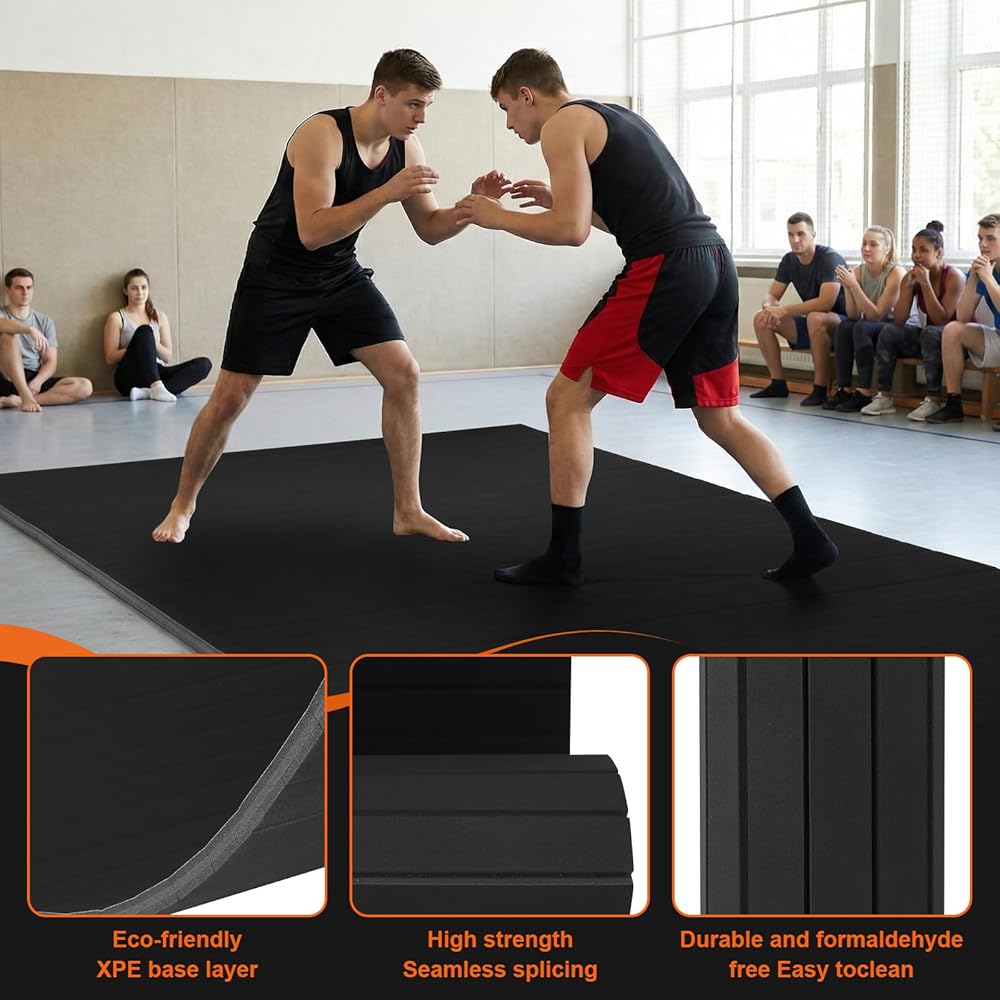 Exceptional Resilience and Impact Absorption: Constructed from high-toughness XPE material, our extra large exercise mat delivers outstanding elasticity and shock resistance, resisting deformation or damage even after long-term use. The textured surface improves slip resistance, ensuring athletes' during intense matches.