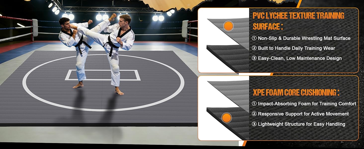 🏠 Big Training Space, Zero Storage Stress: Use the full 8'x 8'x 1.25” wrestling mat for serious training, or set it up in tighter areas when space is limited. The foldable design makes this 8'x 8'x 1.25” wrestling mat for home easy to store in bedrooms, basements, or garages.