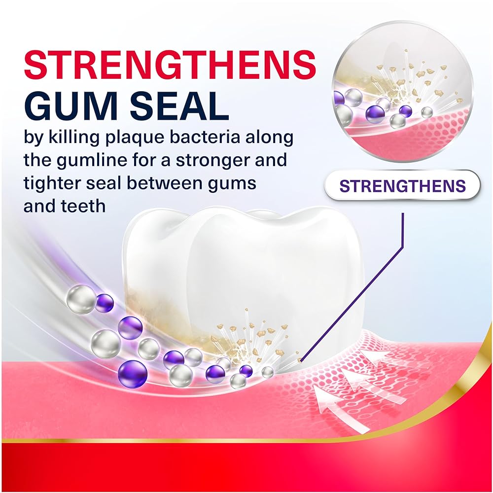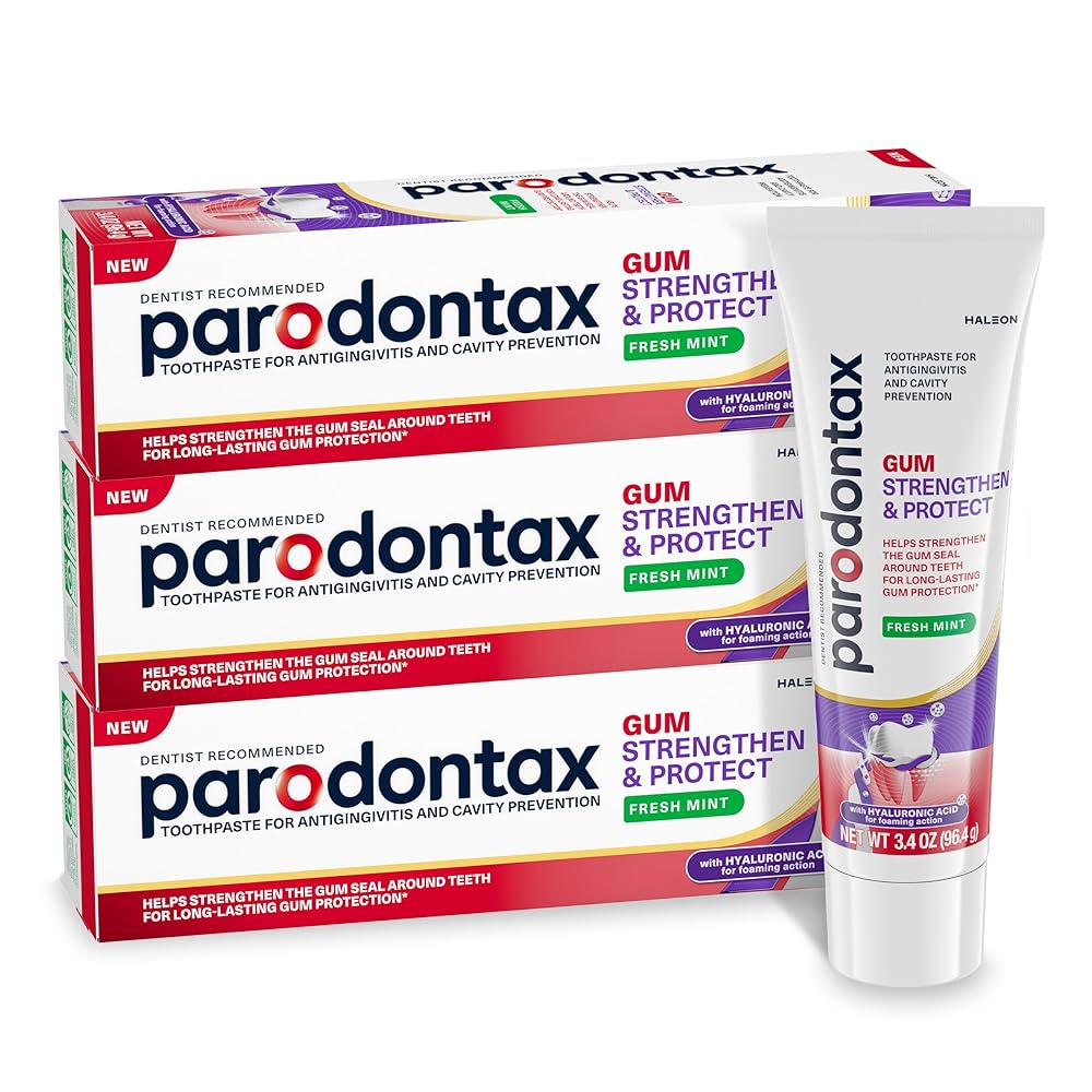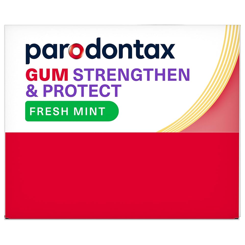 parodontax Gum Strengthen and Protect Fresh Mint Toothpaste strengthens the gum seal around teeth for long-lasting gum protection with continued twice daily use. Its formula is designed by parodontax, the gum health experts, and contains a clinically proven gum health protection ingredient for long-lasting, healthy gums and strong teeth. Healthy gums form a strong and tight seal around teeth. When plaque bacteria builds up along the gum line, this can loosen the gum seal and lead to gum problems. This gum health toothpaste strengthens by killing plaque bacteria along the gumline for a stronger and tighter seal between gums and teeth and this gum health toothpaste protects by helping prevent plaque bacteria build-up to maintain healthy gums every day (1). With Hyaluronic Acid for foaming action, this fluoride toothpaste also freshens breath with a fresh minty flavor. Take a proactive step towards healthier gums and teeth with parodontax Gum Strengthen and Protect Fresh Mint Toothpaste. Try today with NEW parodontax Strengthen and Protect Icy Mint Mouthwash. (1) With continued twice daily use