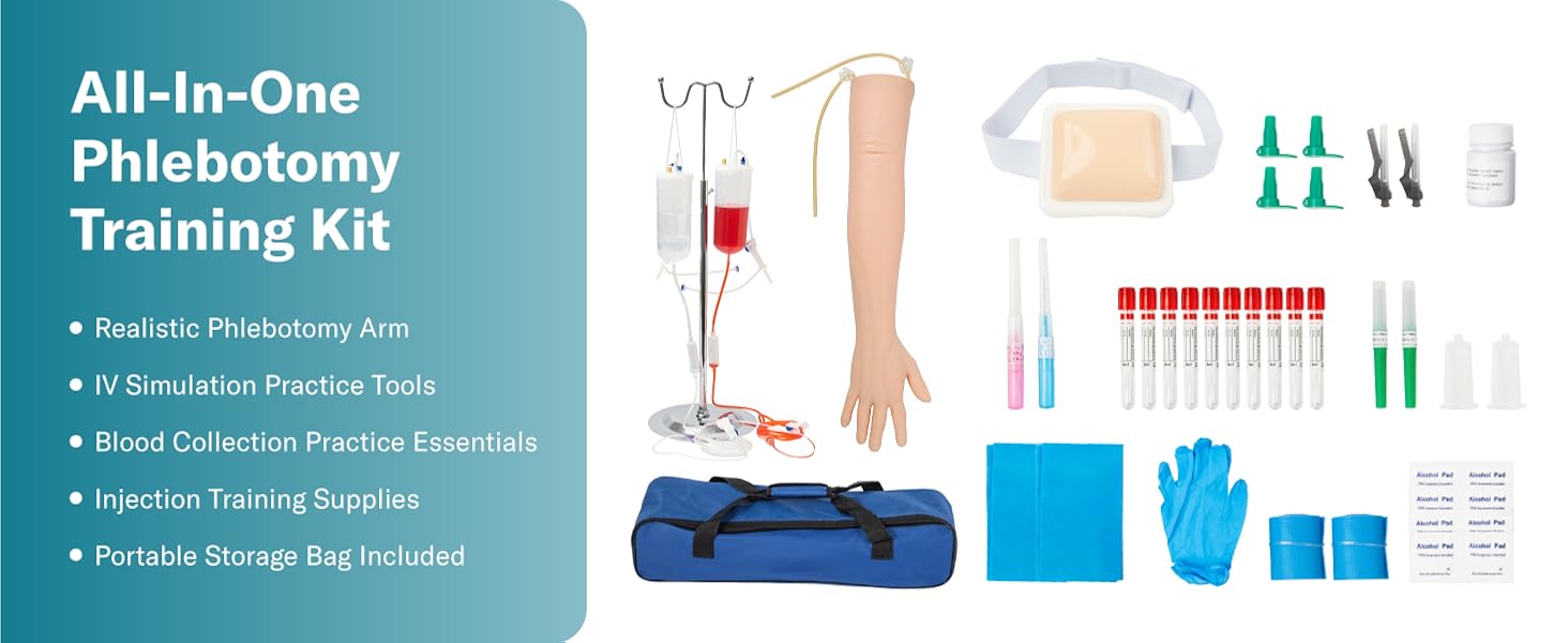 Comprehensive Training Kit – This phlebotomy practice kit includes a simulation arm and essential practice tools, making it a strong learning resource for students and beginners to build hands-on skills from day one.