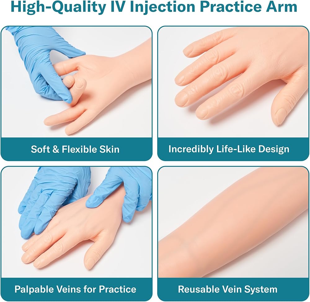 Realistic Skill Practice Setup – Designed for hands-on learning, this simulation arm helps learners practice proper hand positioning, site selection, and technique consistency in a safe training environment.