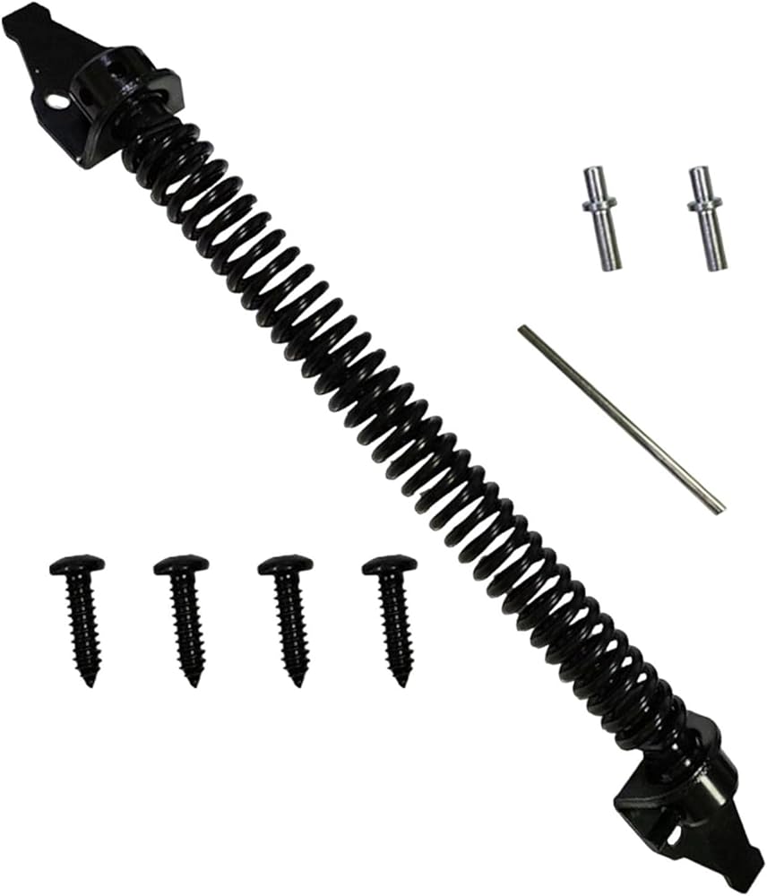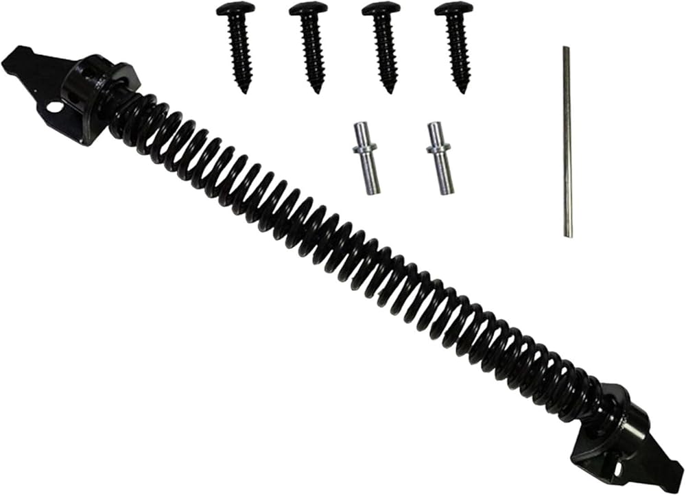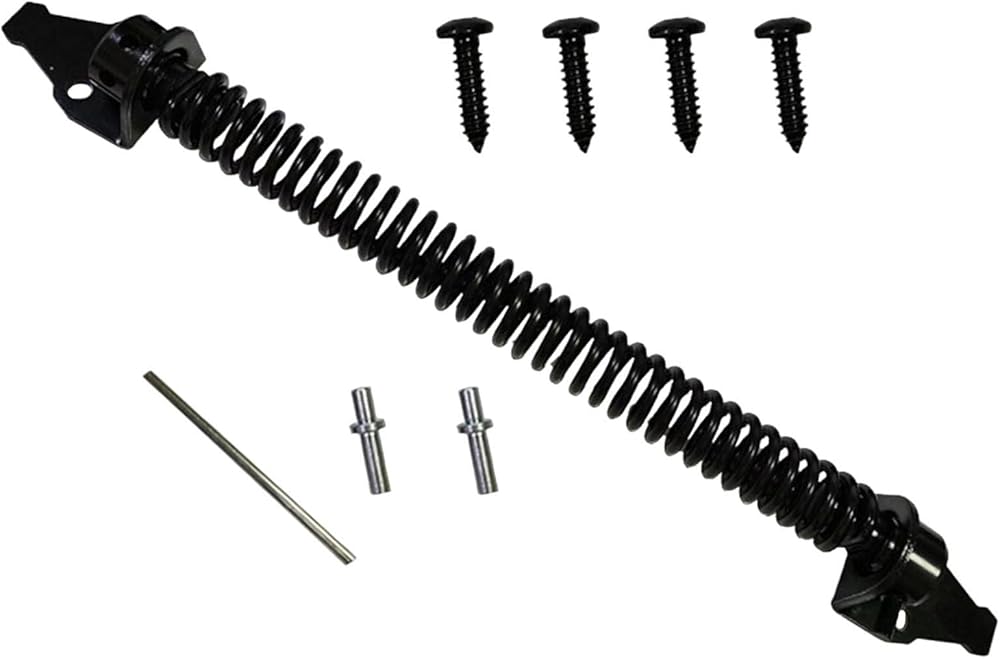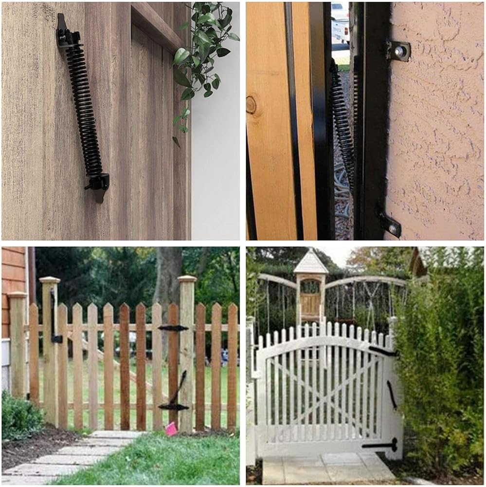 - Design: Self closing outdoor gate spring designed for closing gates, doors, and fences. Adjustable spring tension to heavy duty daily use.