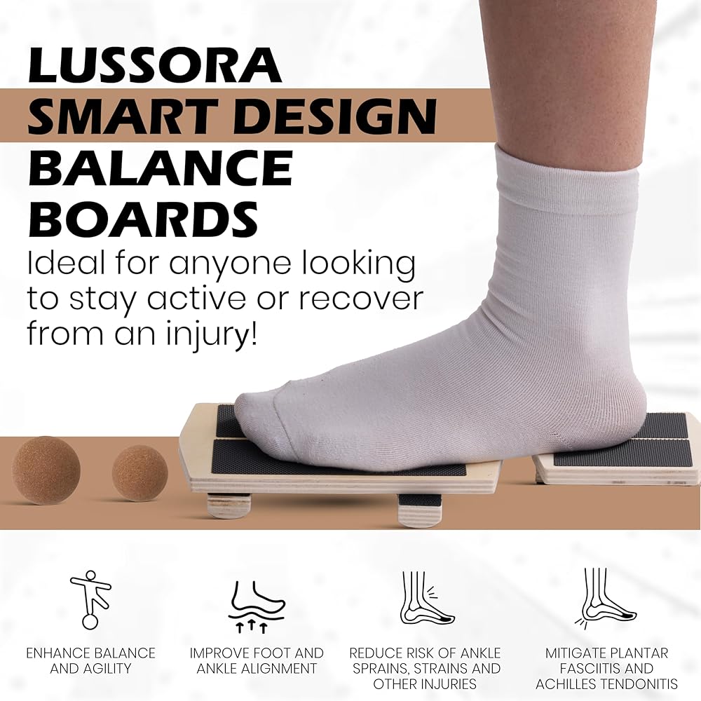 𝗔𝗱𝘃𝗮𝗻𝗰𝗲𝗱 𝗙𝗼𝗼𝘁 & 𝗔𝗻𝗸𝗹𝗲 𝗧𝗿𝗮𝗶𝗻𝗶𝗻𝗴: Experience a complete foot strengthening and ankle stability solution with the Lussora single leg balance board kit. Designed to activate deep stabilizer muscles, improve proprioception, and enhance balance control. Supports mobility, recovery, performance training, and long-term pain prevention.