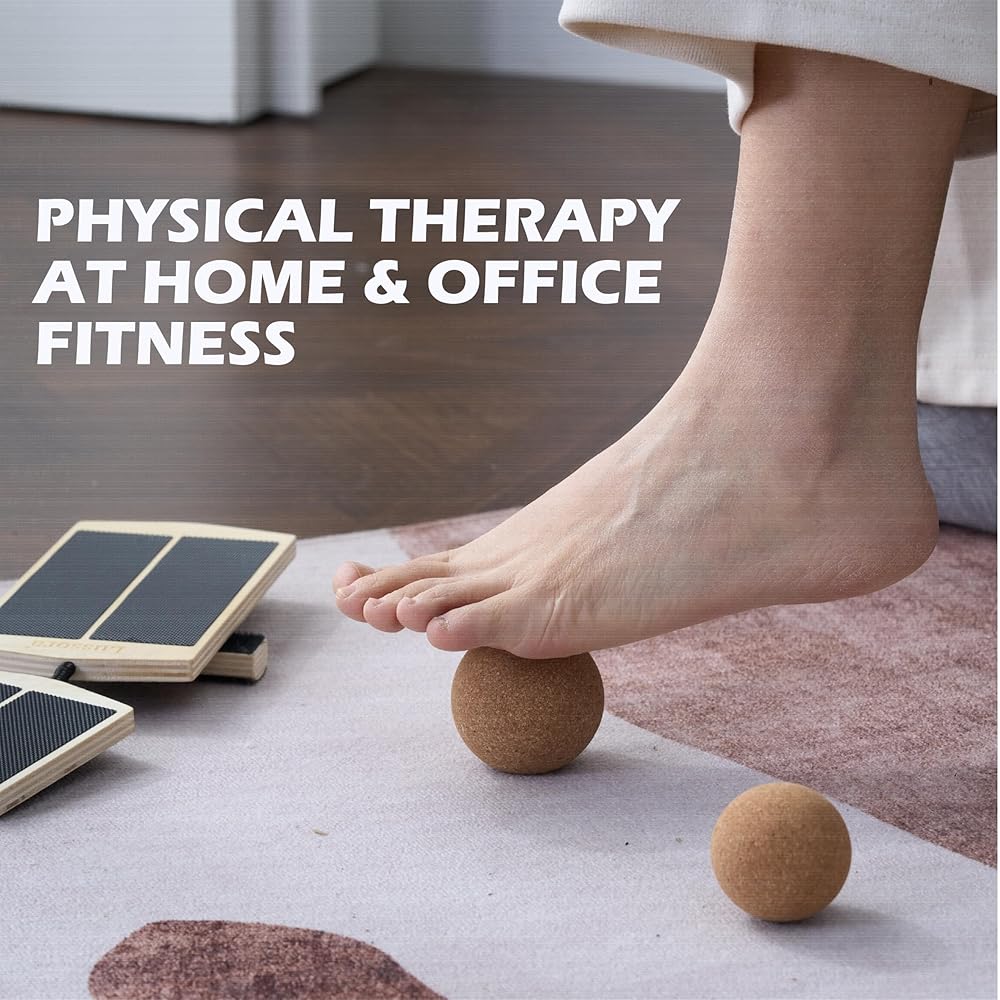 𝗣𝘂𝗿𝗽𝗼𝘀𝗲 𝗼𝗳 𝗧𝘄𝗼 𝗦𝗶𝘇𝗲𝘀 𝗖𝗼𝗿𝗸 𝗕𝗮𝗹𝗹𝘀: The cork balls (2” and 2.5 inches) complement your ankle mobility training to enhance recovery, flexibility, and overall foot and ankle health. While the Axis board builds stability and mobility, the cork balls release tension, improve circulation, and relax your feet. They can also be used on calves, back, and shoulders to relieve tightness, reduce fatigue, and support post-exercise recovery.