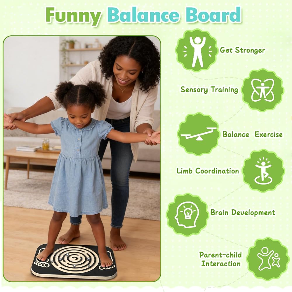 Interesting Balance Board:This wobble board features a built-in ball labyrinth with 6 balls, blending balance training with fun gameplay. It challenges and motivates both kids and Toddlers, while enhancing body awareness, coordination, and core muscles—making it a perfect choice for family fitness.