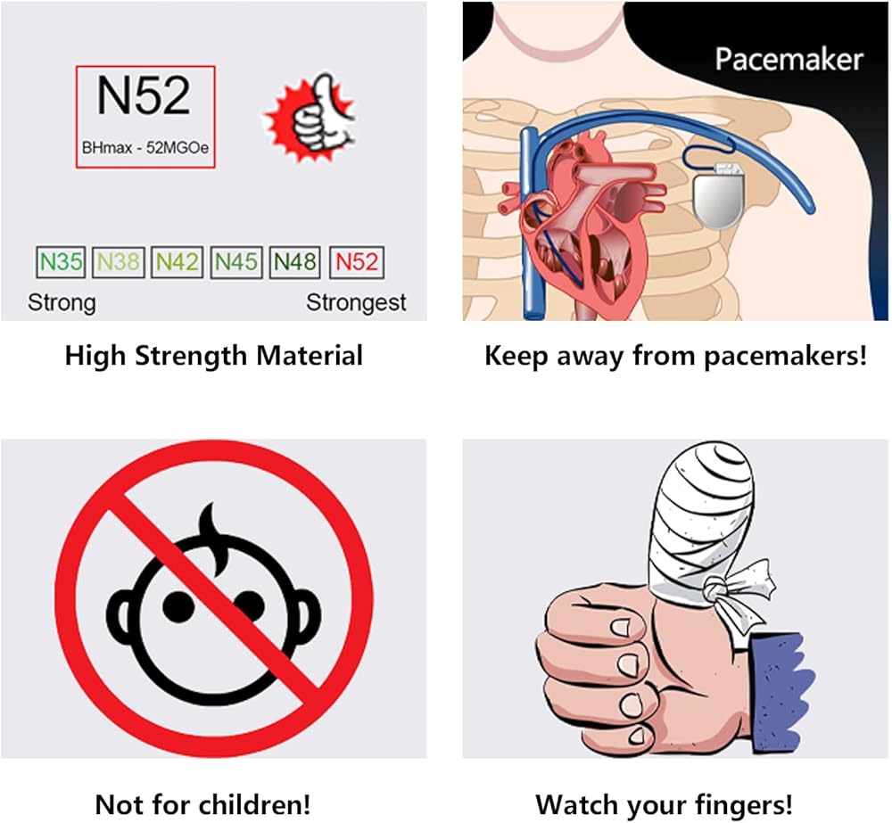 • 【Warning】- Be careful with magnets because strong ones can hurt your fingers. When pulling apart big magnets, be sure to do it the right way. If you do it wrong, the magnets can get too strong and easily break. Also, be far away from pacemaker and children in case of harm.