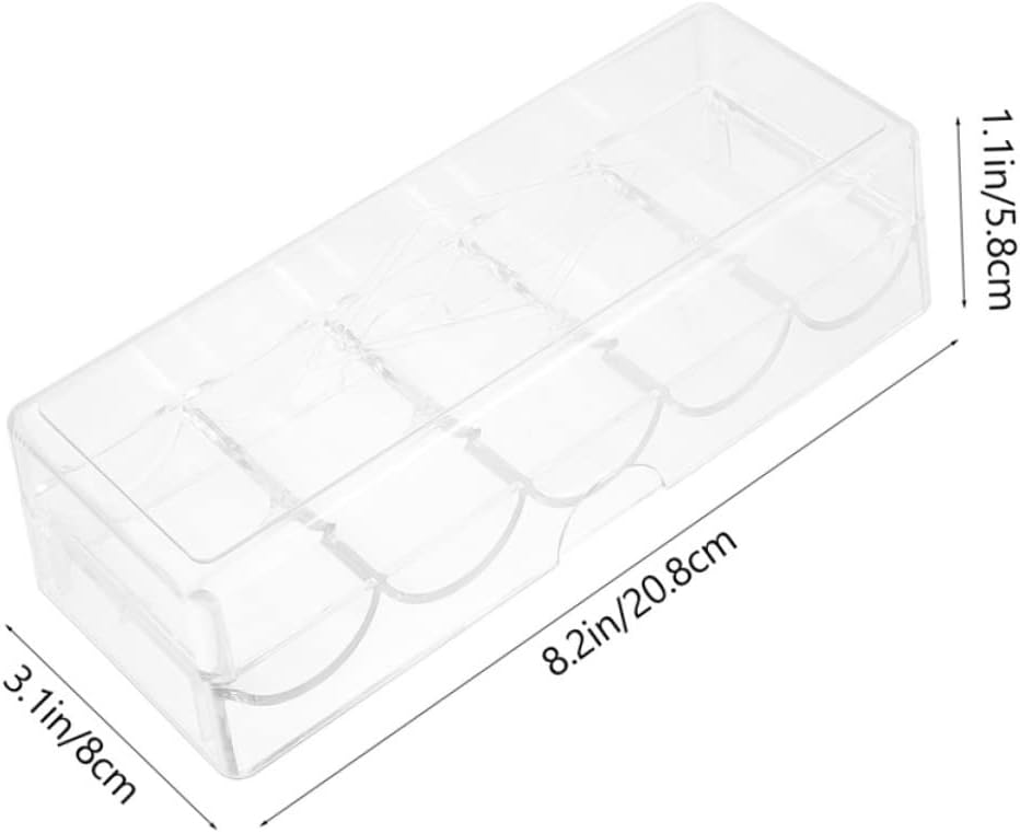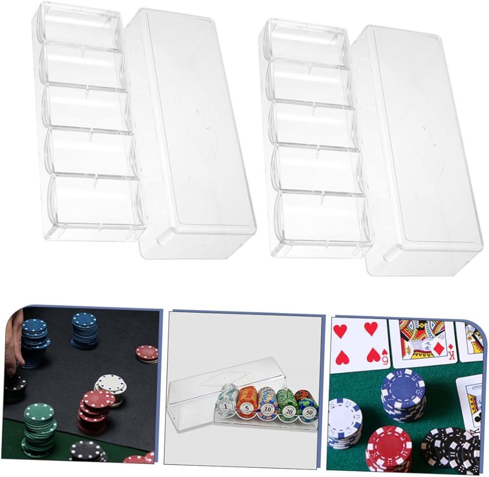 - Five compartments, which can hold 100 chips in total, are sorted and kept in order Clear Poker Container.
