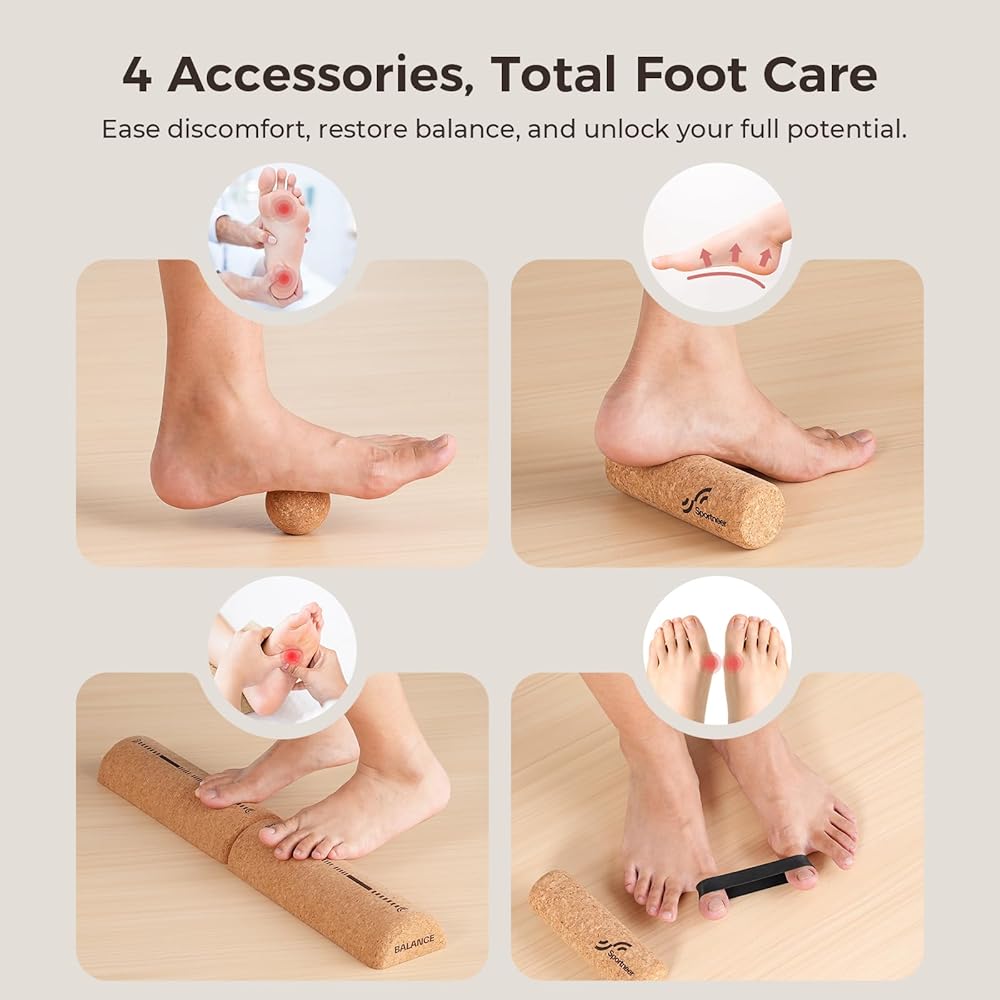 Relieve Foot Pain & Strengthen Arches: Suffering from plantar soreness or weak arches? This cork foot exerciser set provides targeted foot pain relief and soothing foot massage, helping strengthen the arch and ankle muscles for better posture, mobility, and comfort.