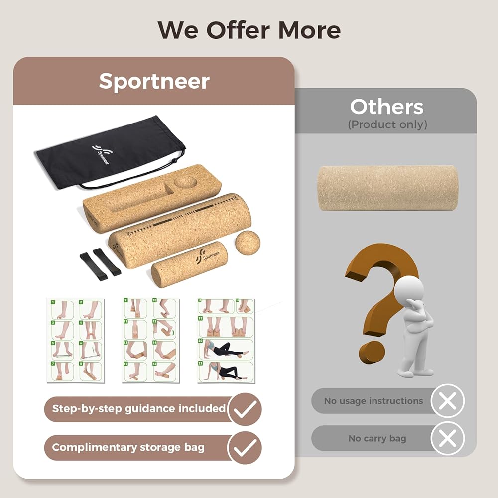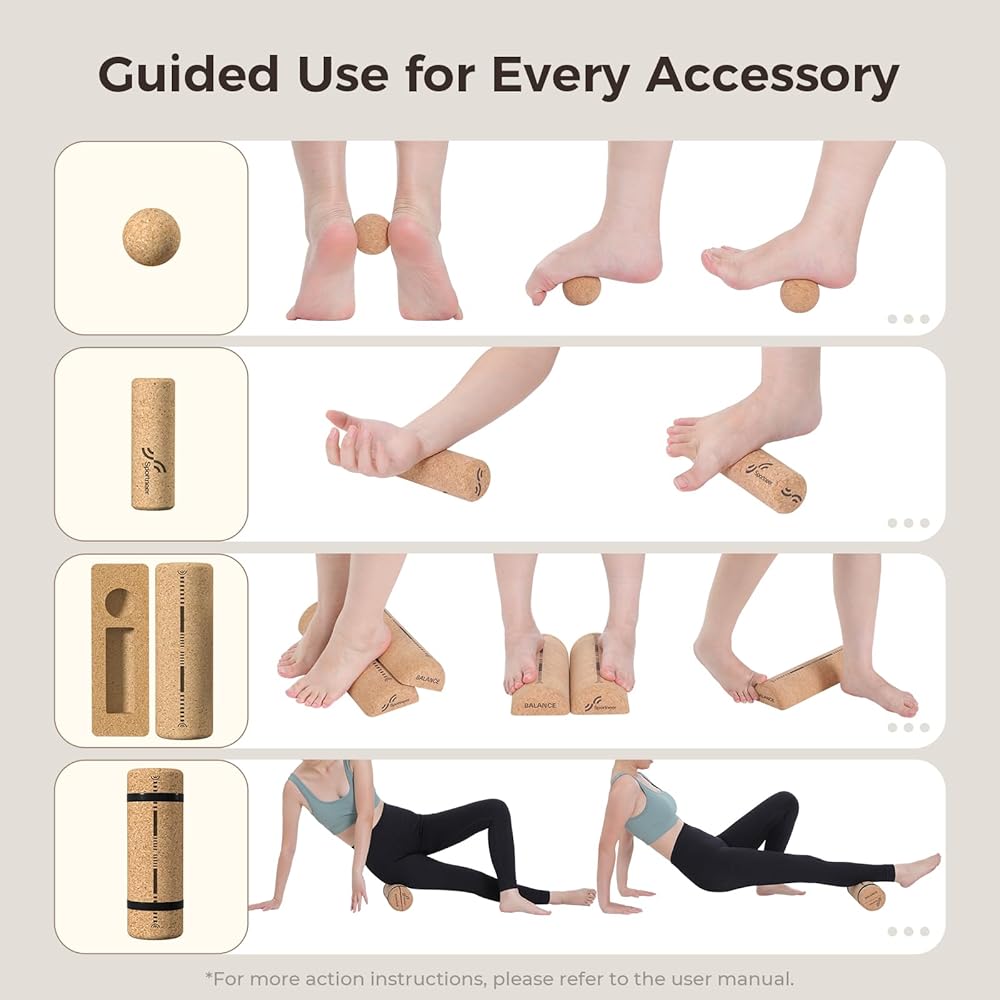 Safe, Eco-Friendly & Skin-Friendly Material: Made from 100% natural cork, this set is non-toxic, odor-free, sweat-absorbent, and floor-safe. It's firm yet gentle on the skin, delivering effective massage without damaging floors or causing discomfort.