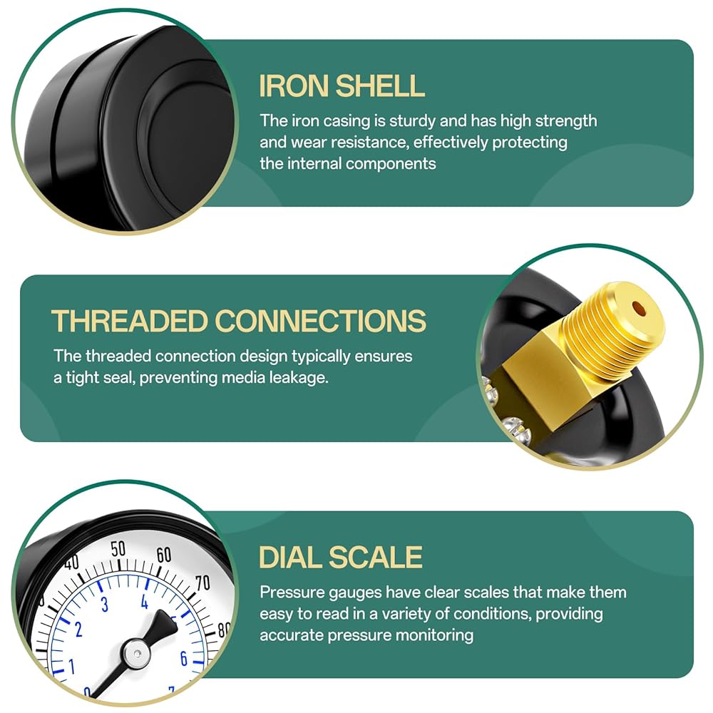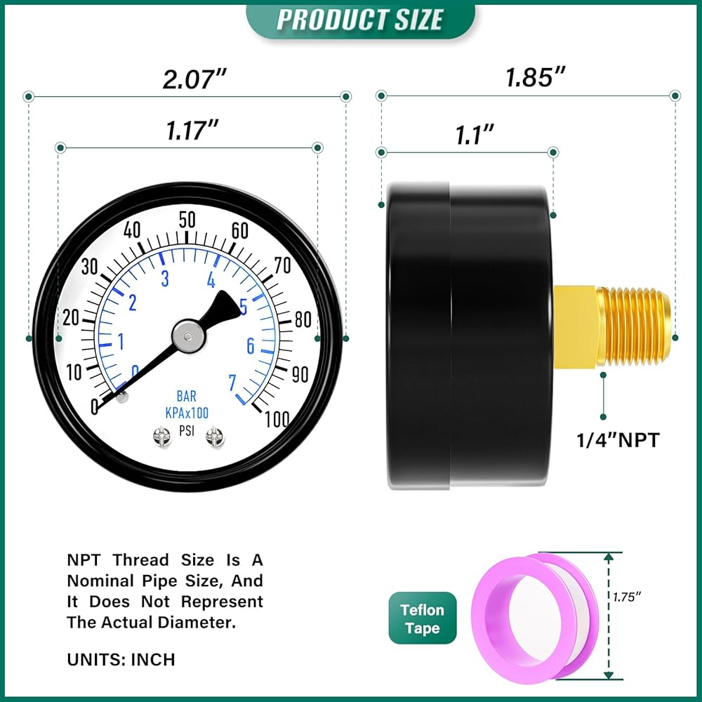 0-100psi Well Pump Pressure Gauge 1/4" NPT 2" Face Dial Size Back Mount, Multifunctional Practical Dry Pressure Gauge, for Water, Oil and Air Compressor