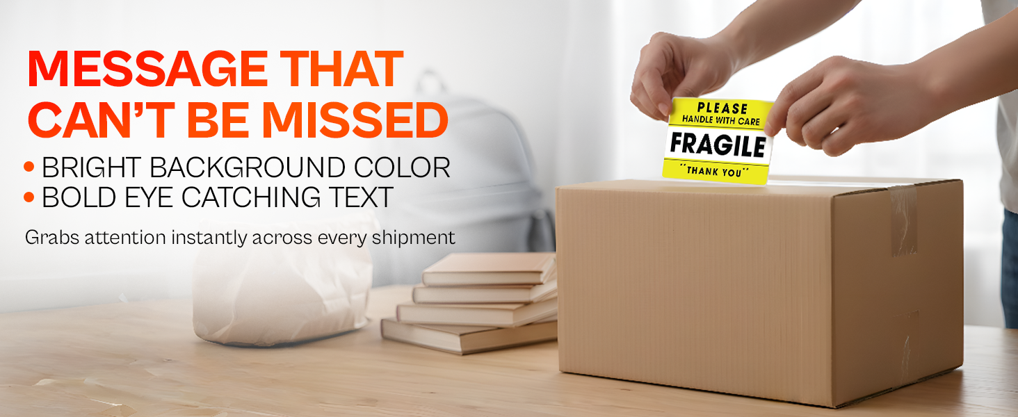 MULTIPURPOSE PACKAGING STICKERS – Ideal for online sellers, warehouses, moving boxes, or personal shipments—use them on cartons containing glass, electronics, ceramics, or other fragile items.