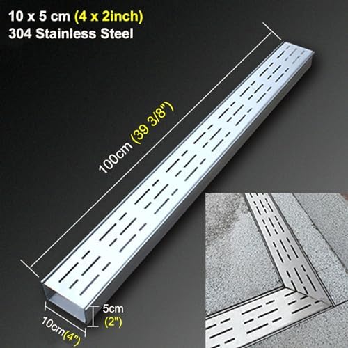 Introducing our Cact Channel Drain Kit, an essential solution for effective water drainage in both indoor and outdoor settings. Designed specifically for low water flow areas, this kit not only facilitates fast drainage but also enhances the aesthetics of your yard. **Specifications:** - **Material:** Durable 304 stainless steel - **Length:** 1m (39.4 in / 3.3 ft) - **Sizes Available:** - 3.5x3 cm (1 3/8x1 1/8") - 5x3 cm (2x1 1/8") - 5x5 cm (2x2") - 7x3 cm (2 3/4x1 1/8") - 7x5 cm (2 3/4x2") - 10x3 cm (4x1 1/8") - 10x4 cm (4x1 5/8") - 10x5 cm (4x2") - 15x4 cm (5 7/8x1 5/8") - 15x5 cm (5 7/8x2") - 15x8 cm (5 7/8x3 1/8") **Key Features:** - **Simple Installation:** Quick and hassle-free assembly process. - **Maintenance Friendly:** Grates are designed for easy removal and cleaning. - **Versatile Application:** Perfect for any area requiring drainage, including gardens, patios, pools, and driveways. - **Efficient Design:** Narrow, elongated holes ensure rapid drainage while preventing leaves and debris from clogging. - **Multiple Uses:** Ideal for homes, sports courts, and more, providing a reliable drainage solution wherever needed. **Package Includes:** - 1 x Channel Drain Kit **Note:** - Slight dimensional variations may occur due to manual measurements. - Colors may vary slightly due to lighting and screen settings. **Quality Service:** Should you require customized guttering with corners or have any questions about our products, please don't hesitate to reach out. Experience a cleaner and more organized space with our Cact Channel Drain Kit today!