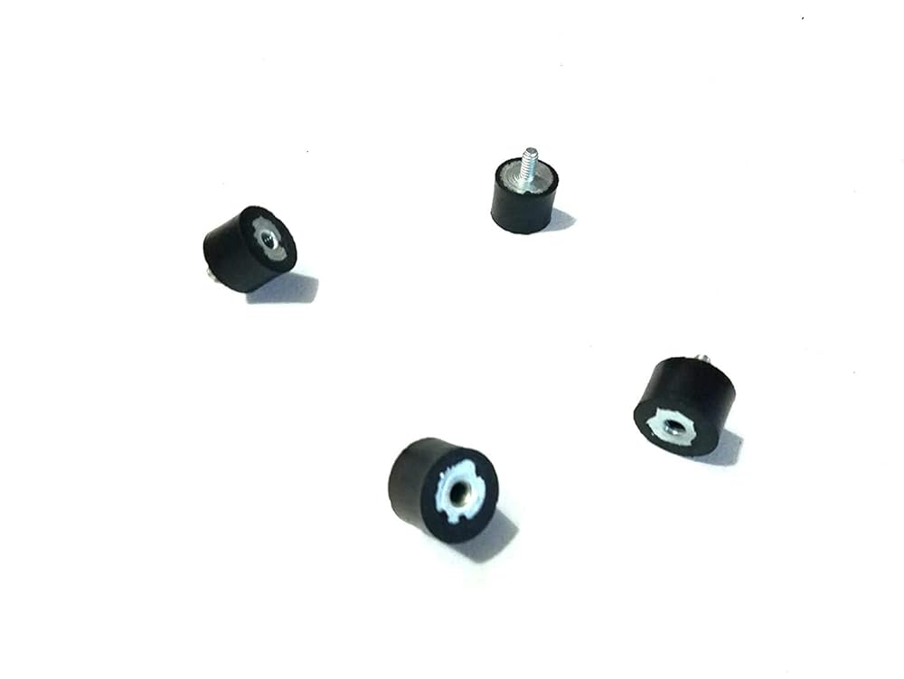 4 Rubber Vibration Isolator Mounts (1" Dia x 3/4 Ht) 1/4"-20 x 1/2" Length Stud These mounts measure 3/4" in thickness (rubber height) and 1" in diameter (rubber diameter) Stud is 1/2" Long with 1/4"-20 Male and Female thread. Package Includes: 4 Isolation rubber mounts Provides excellent noise and vibration reduction. Can be used on/in: Water pumps Construction Automobile Electronic components Medical equipment Home appliance Mechanical equipment Office facilities Aviation Air compressors Diesel engines Gasoline engines Industrial Machines and may more applications