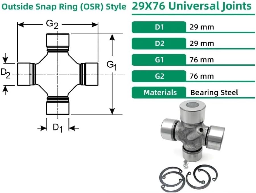 Includes Universal Joint dimensions and related parts
