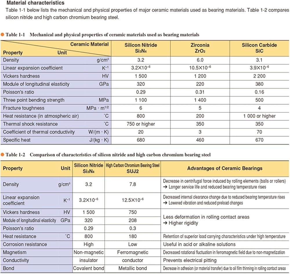 Ceramic Bearings are highly heat resistant enabling a rolling bearing to be practical in a high temperature environment. The low density of ceramic decreases the centrifugal force induced by rolling elements (balls or rollers) contributing to an increased speed of the apparatus.