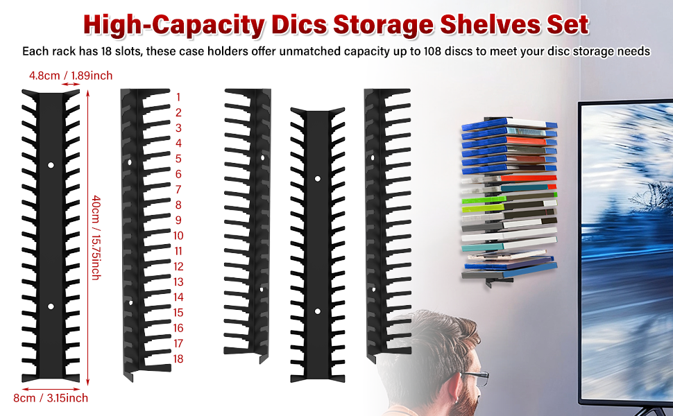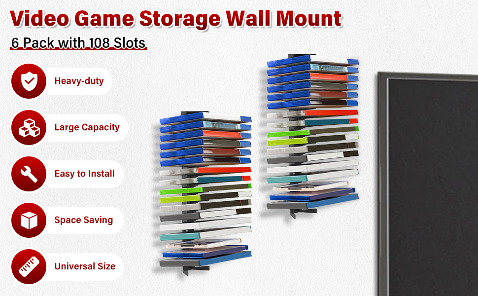 【Massive 108-Game Capacity in a 6-Pack Set】This 6-piece set delivers an impressive total capacity of 108 standard game cases—each rack holds up to 18 cases. Whether you're a casual gamer or a dedicated collector, this high-capacity storage system keeps your entire library neatly organized in one place.
